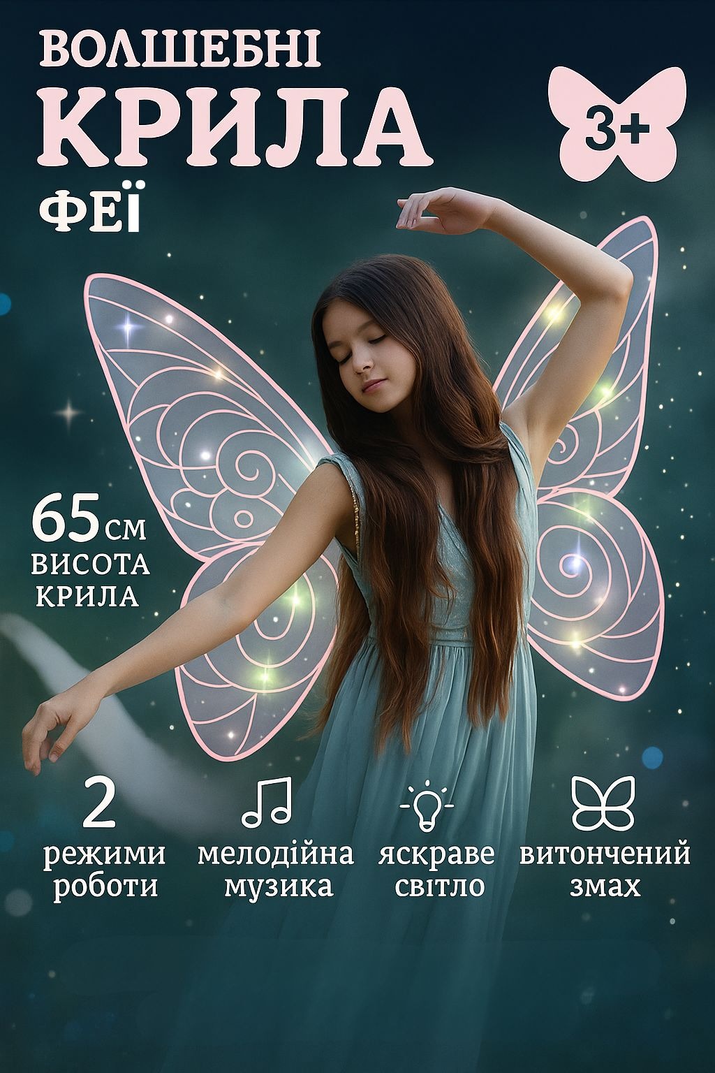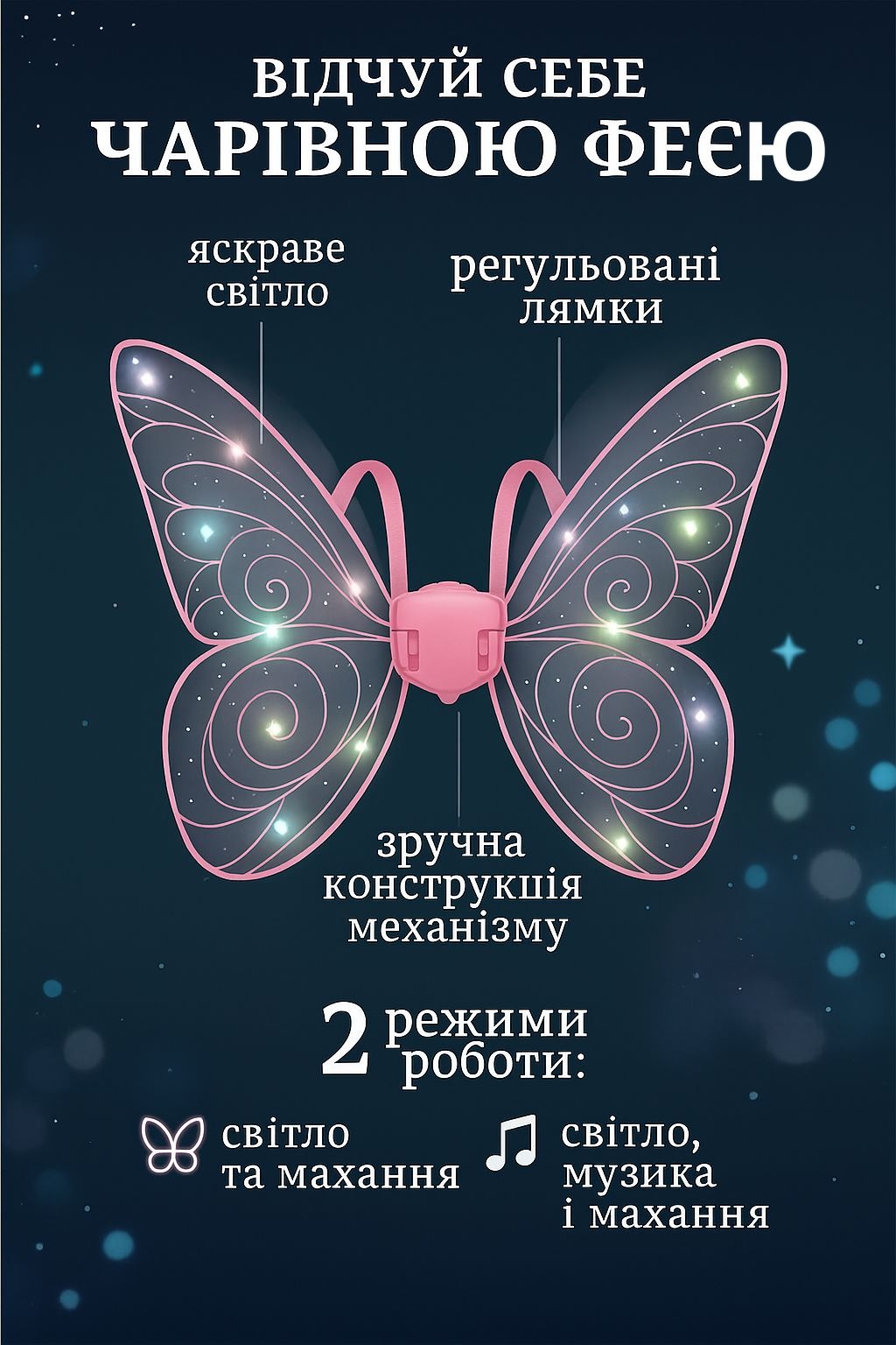 Магічні крила феї з підсвіткою та музикою — чарівна гра для кожної дитини!
