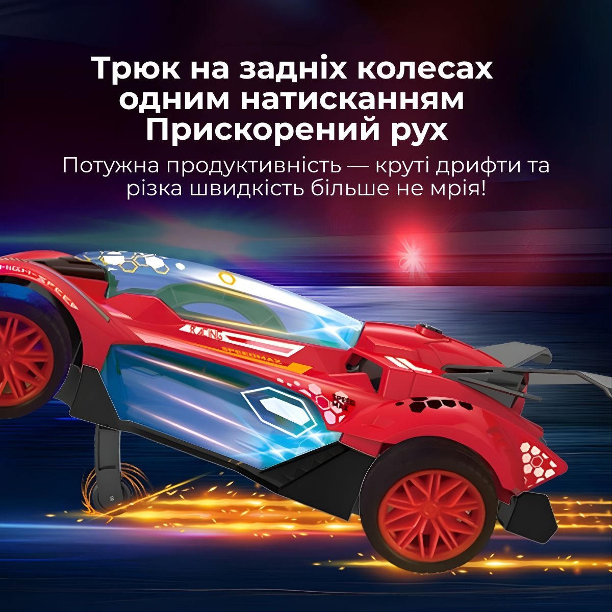 Сучасна радіокерована трюкова машинка поєднує швидкість, ефектність і функціональність. Вона здатна виконувати трюки, дрифтувати, обертатися на 360 градусів і створювати ефект пари, що нагадує «вогняний вихлоп».