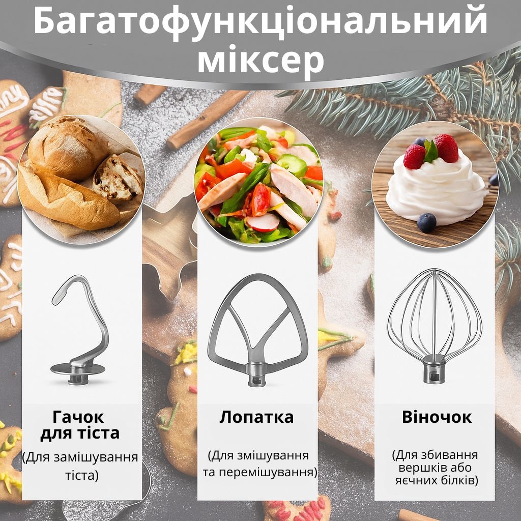 Комбайн підходить як для домашнього використання, так і для міні-пекарень, кондитерських і невеликих кафе. Це практичне рішення для тих, хто цінує якість, функціональність та надійність техніки.