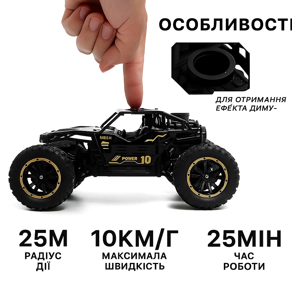 Завдяки якісній гумі, з якої виготовлені шини, модель автомобіля підкорить будь-які дороги на планеті!Автомобіль оснащений за останнім словом іграшкової техніки: