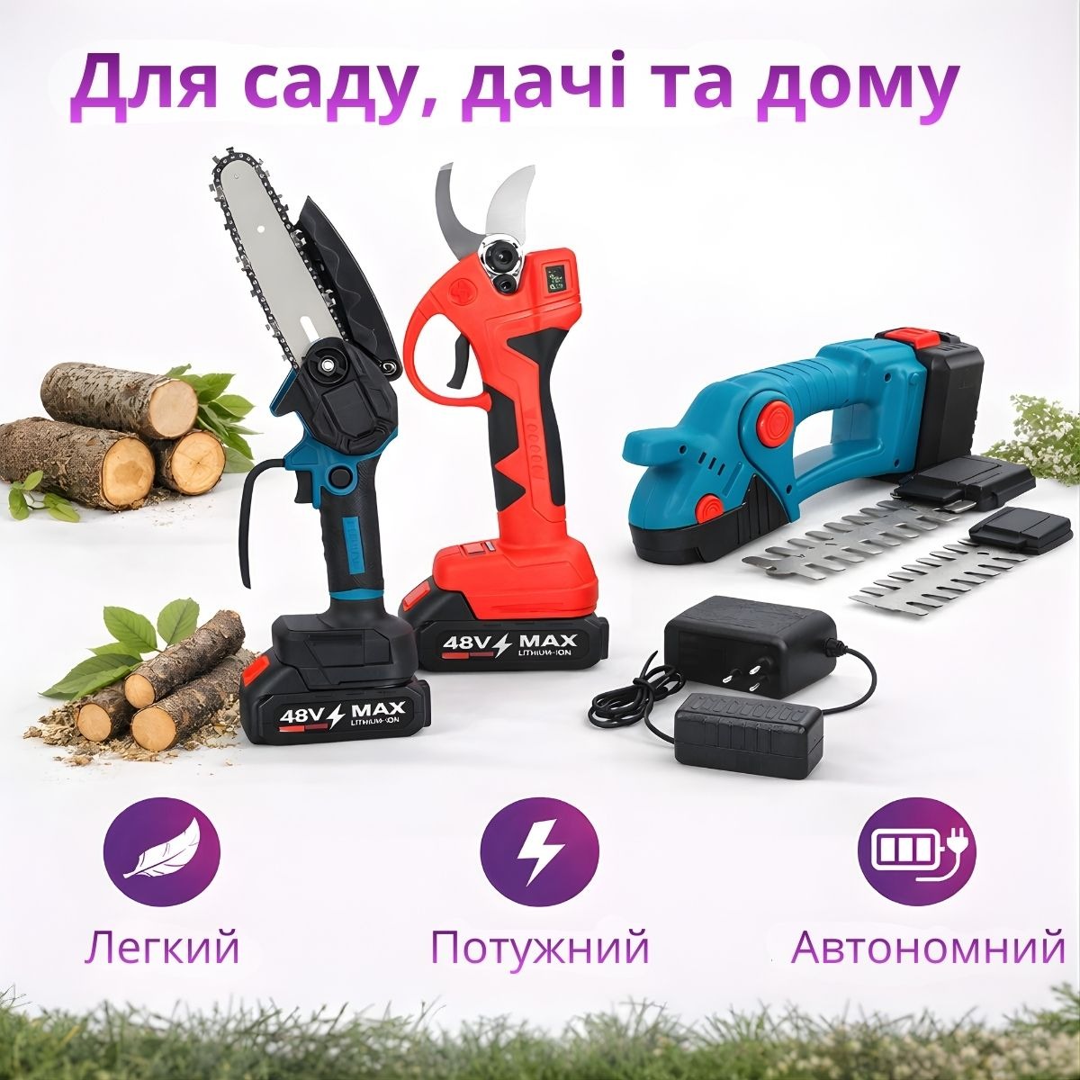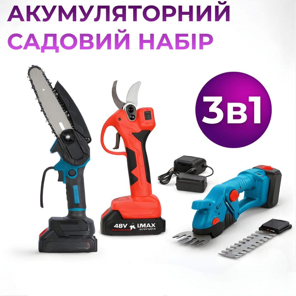 Акумуляторний садовий набір 3 в 1: секатор, кущоріз та мініпила