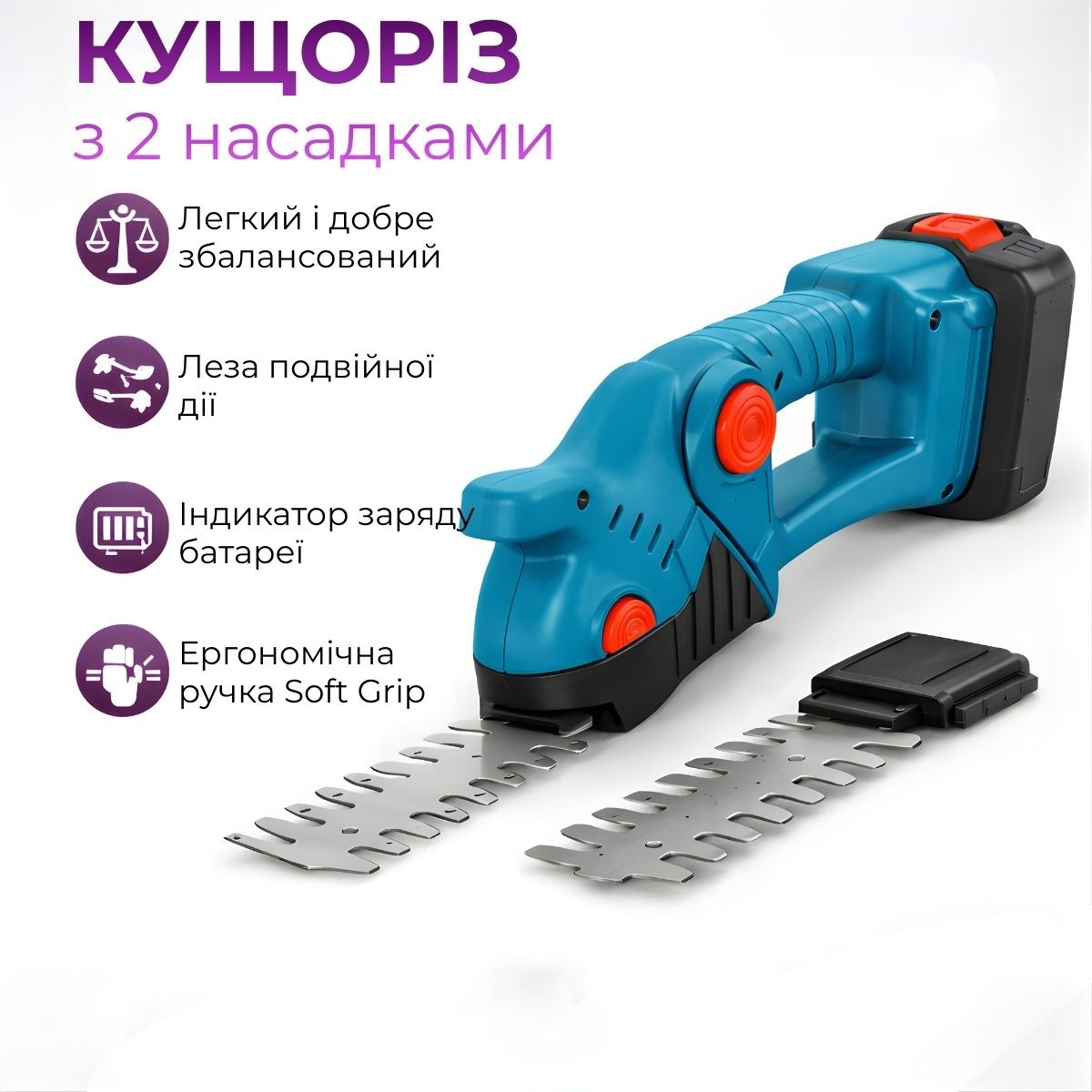Акумуляторні ножиці-кущоріз призначені для догляду за газоном, кущами та живими огорожами. Оснащені літій-іонним акумулятором, високоякісними лезами з високовуглецевої сталі та зручною ергономічною ручкою Soft Grip. Підходять для тривалої роботи на великих ділянках.