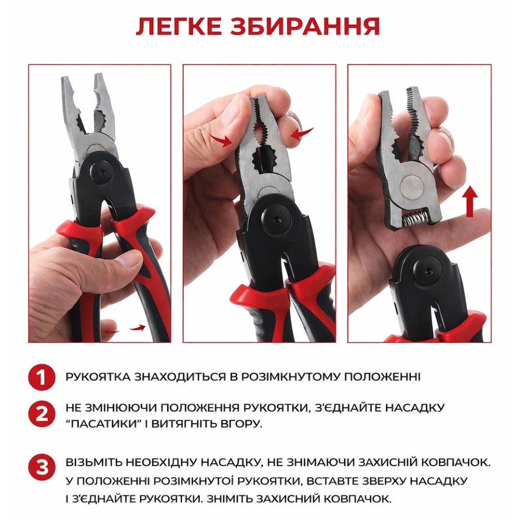 - Тип: багатофункціональні плоскогубці з насадками