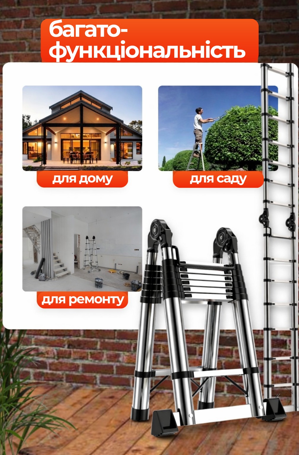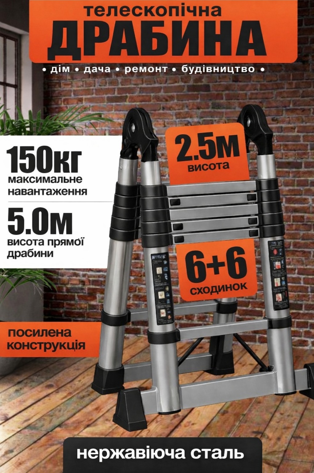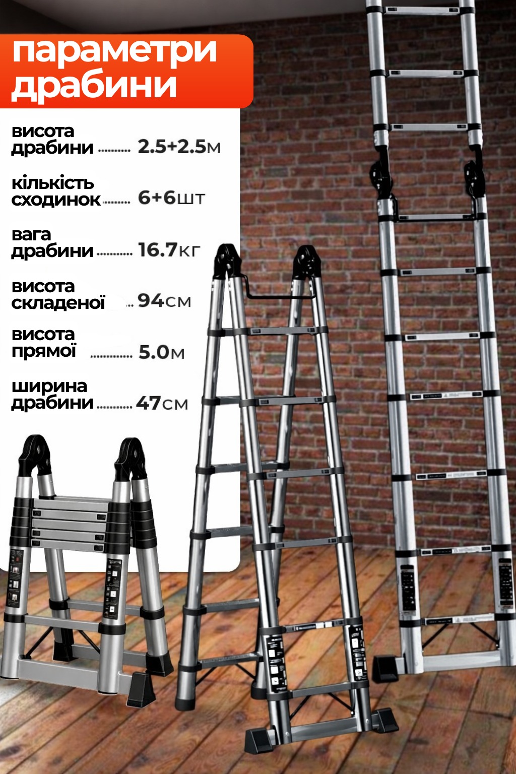 Телескопічна шарнірна сталева драбина 2,5 х 2,5 м