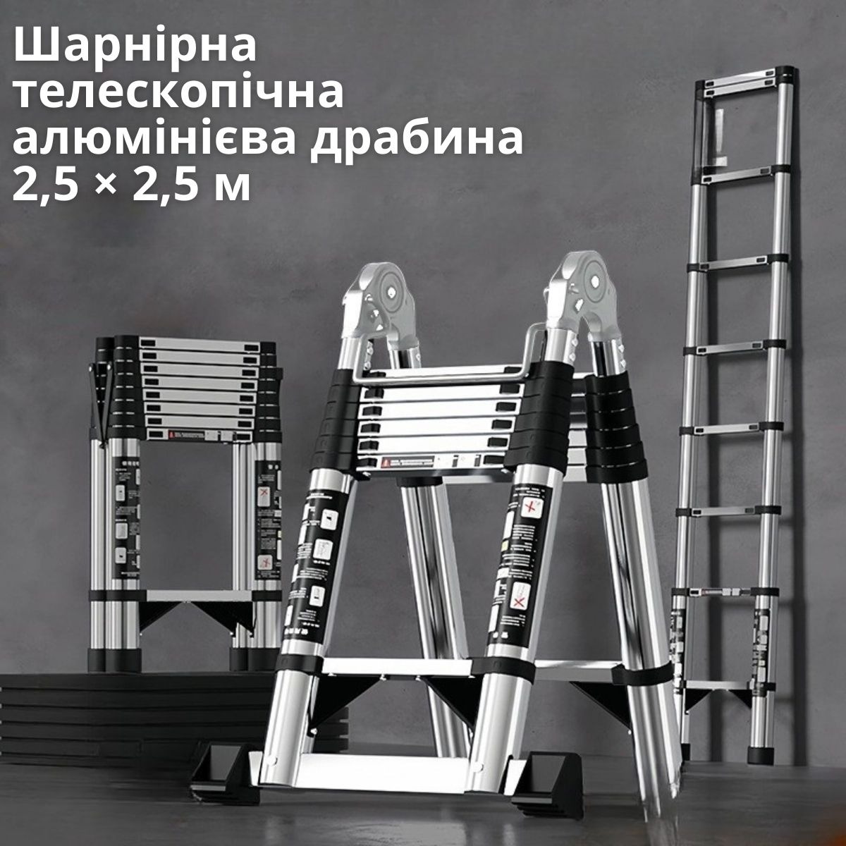 Шарнірна драбина телескопічна алюмінієва 2,5 2,5 м