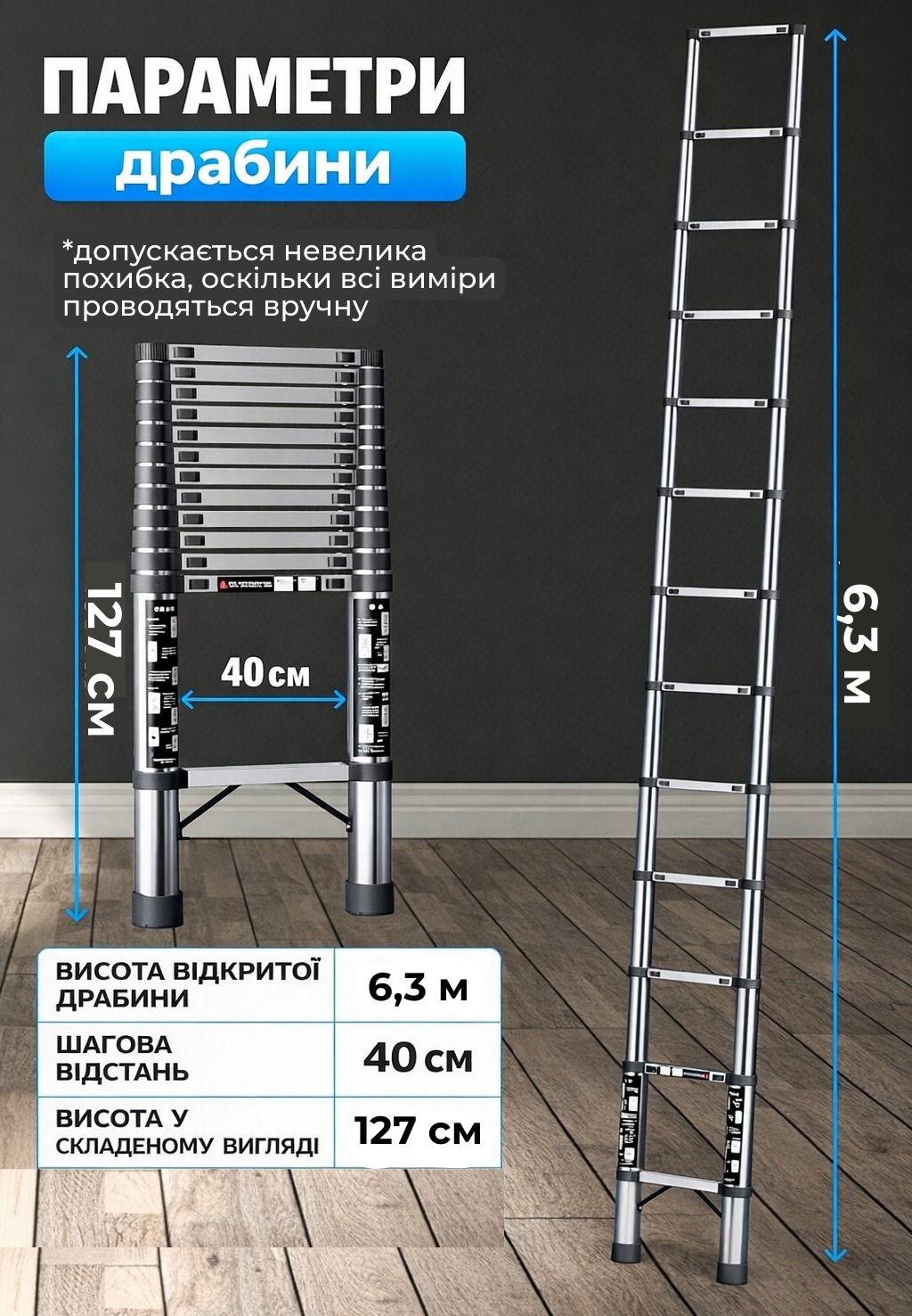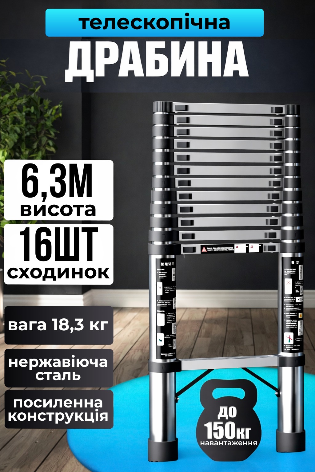 Телескопічна сталева драбина — це надійне та універсальне рішення для роботи на висоті як у побуті, так і в професійній сфері. Завдяки продуманій конструкції вона легко розкладається до максимальної висоти та компактно складається для зручного зберігання і транспортування.