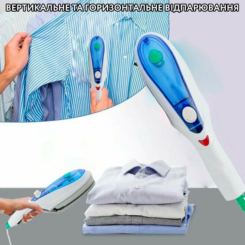 З ручним відпарювачем не потрібно використовувати прасувальну дошку або стіл, функція горизонтального та вертикального відпарювання в будь-якому напрямку дозволяє доглядати речі, не знімаючи їх з вішалки;