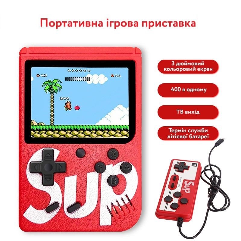 Акумулятор ємністю 1020 mAh, розрахований на 6 годин безперервної гри. Має можливість підключення до ТV. Дисплей: кольоровий LCD, 3 дюйми. Особливості:- 400 ігор в одному маленькому гаджеті