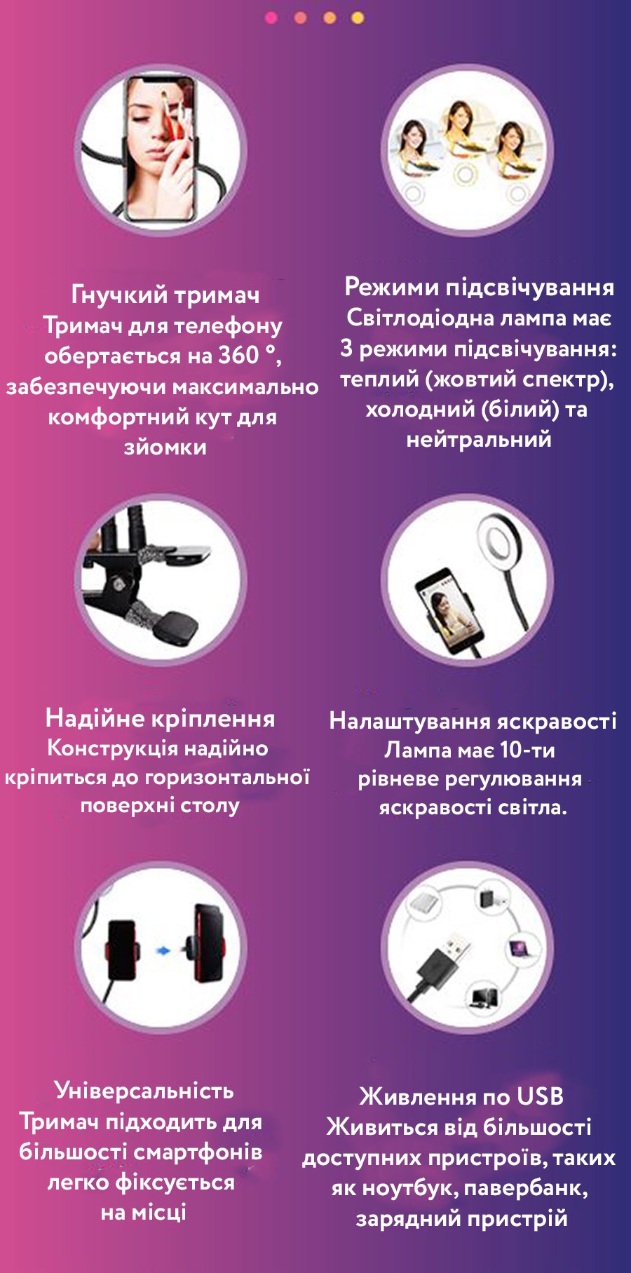 | Призначення | Освітлення і запис/передача з мобільних гаджетів |