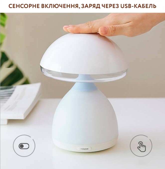 Дитяча сенсорна лампа-нічник у формі грибочка