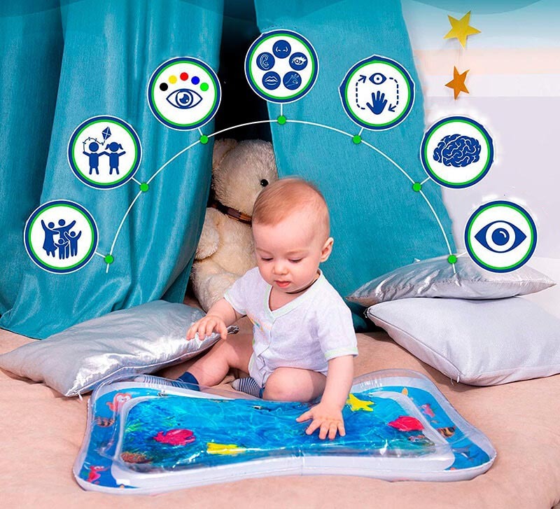 Коврик очень прикольный. С начало играла сама прям такой анти стресс. Материал прочный и приятный, как круг для плавания. Сзади имеется отверстие для заполнения воды, и отверстие выпустить воздух, как я поняла можно так же воду не заполнять, а просто надуть. Бока тоже надувются. Внутри рыбки несколько штук плавают)) Ребёнок счастлив, с ним и мы. Цена и качество порадовали.
