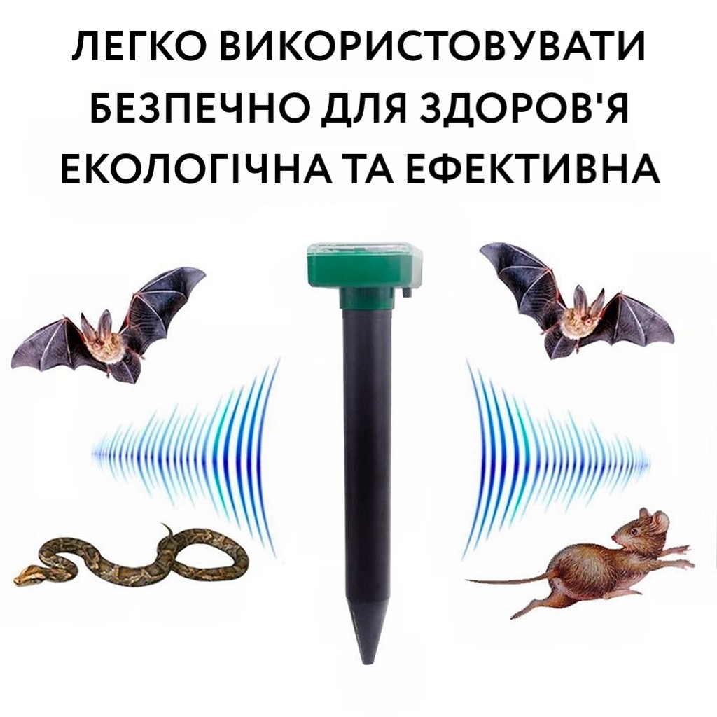 - Ультразвукові сигнали для відлякування гризунів поширюються з наконечника в землю кожні 30 секунд