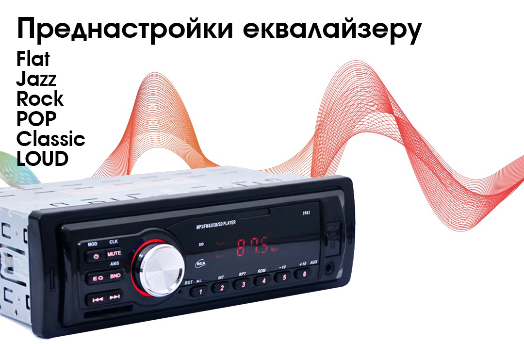 Сучасна та функціональна автомагнітола має FM-тюнер з автоматичним настроюванням, 18 каналів з швидким доступом, відтворення файлів з USB і карток SD, ЖК дисплей, цифровий годинник.