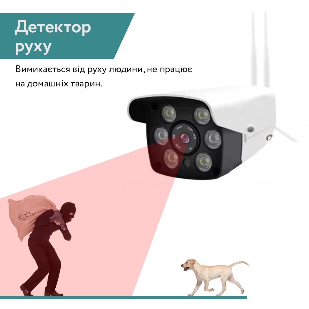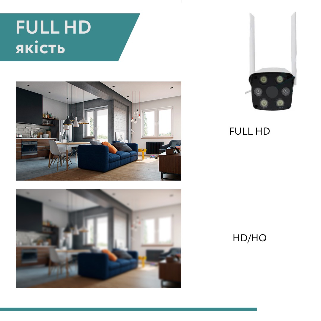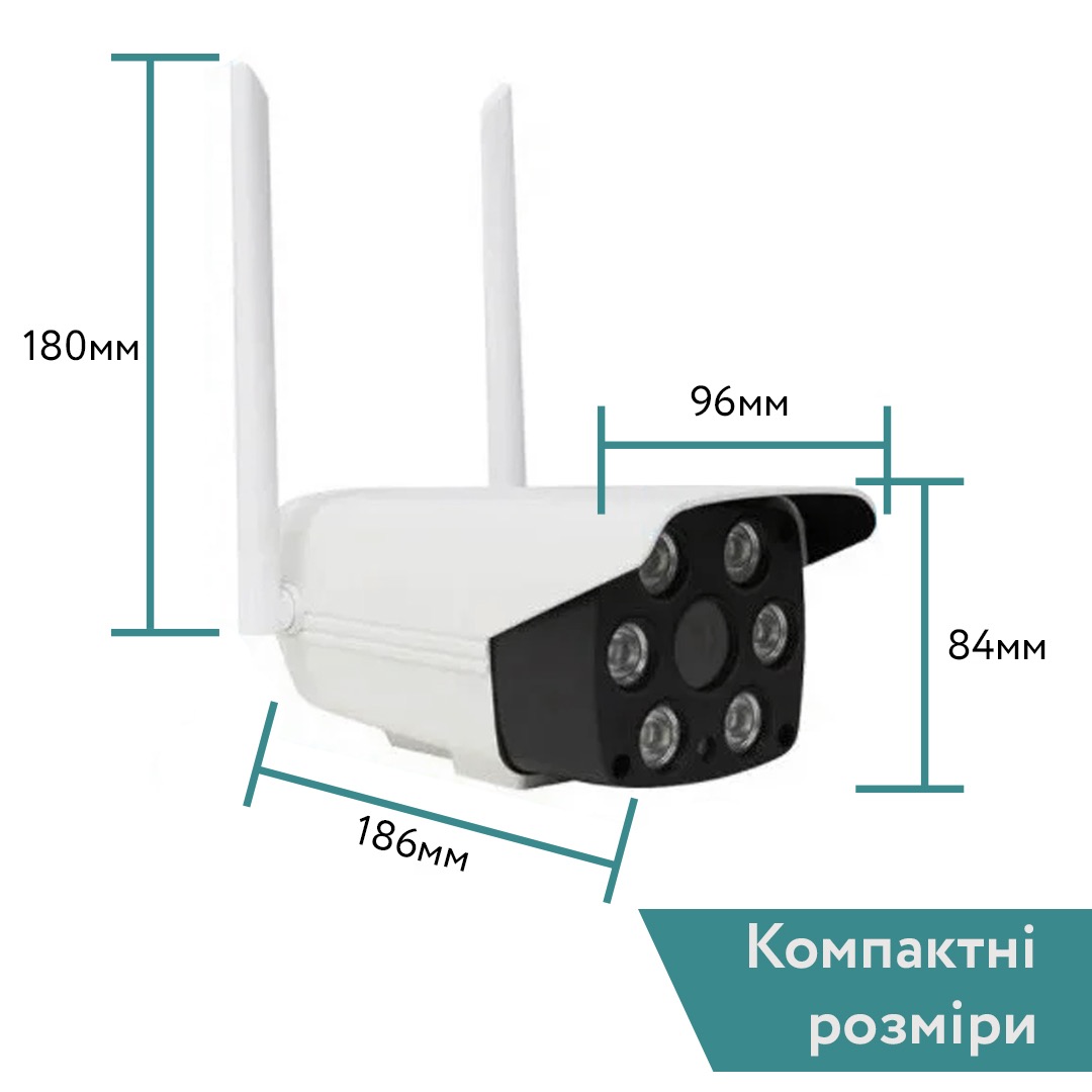 | Переваги | Wifi і Full HD, вбудовані 2 інфрачервоні нічного бачення і яскрава світлодіодна підсвітка, стійка до води, дощу, сонця, використання на відкритому повітрі |
