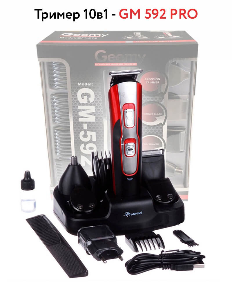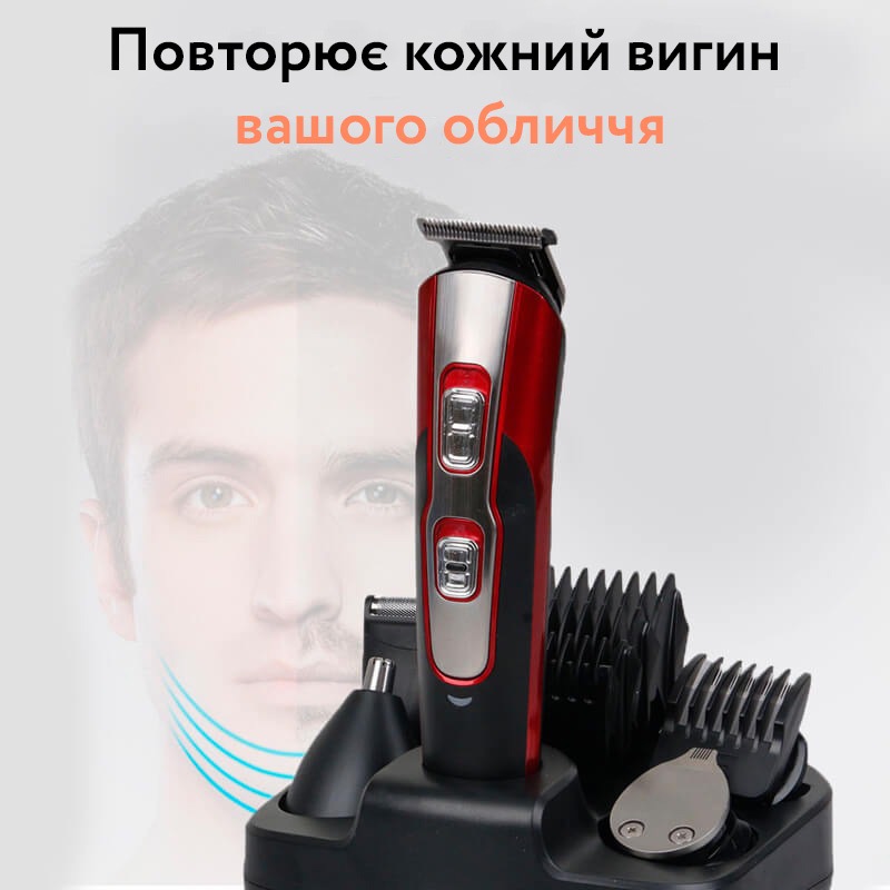 Компактний та простий у використанні, Леза з нержавіючої сталі, Виконує функцію машинки для стрижки, бритви та тримера одночасно - 10в1.