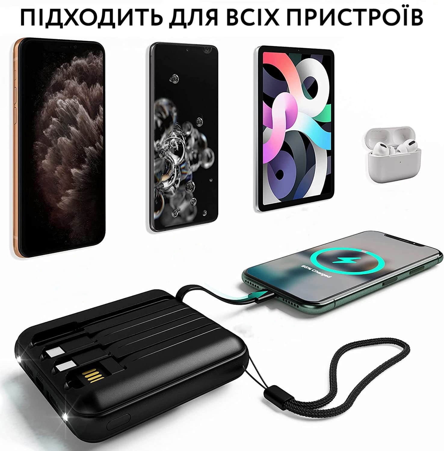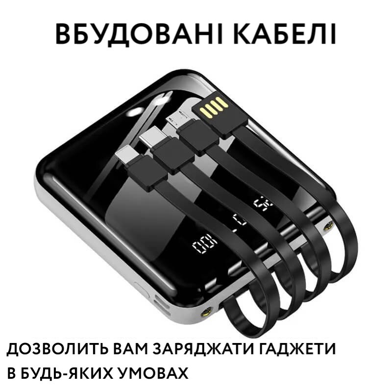 Power Bank 20000 mAh із вбудованими шнурами