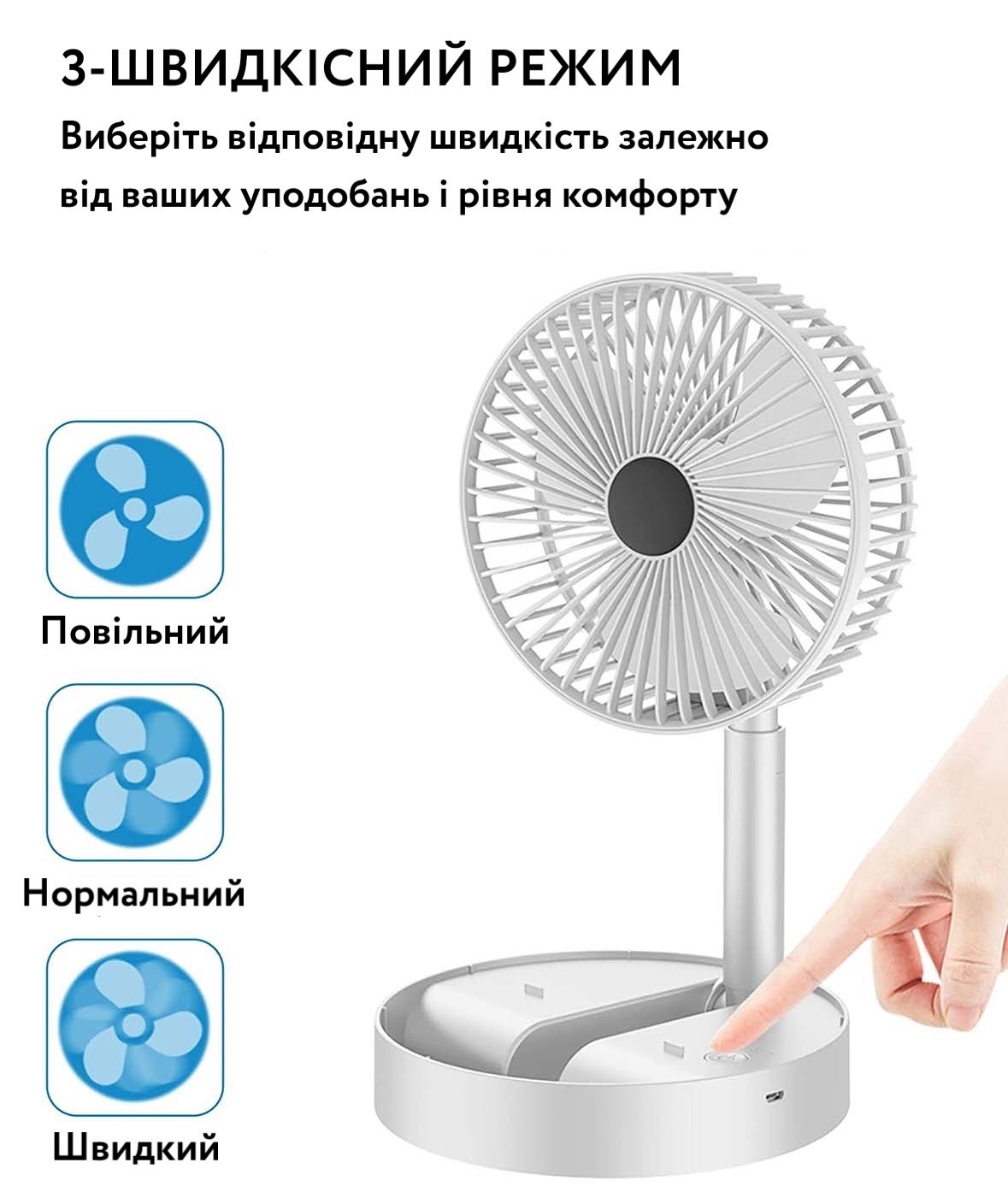 Складаний USB вентилятор з телескопічним ножем. Три режими потужності