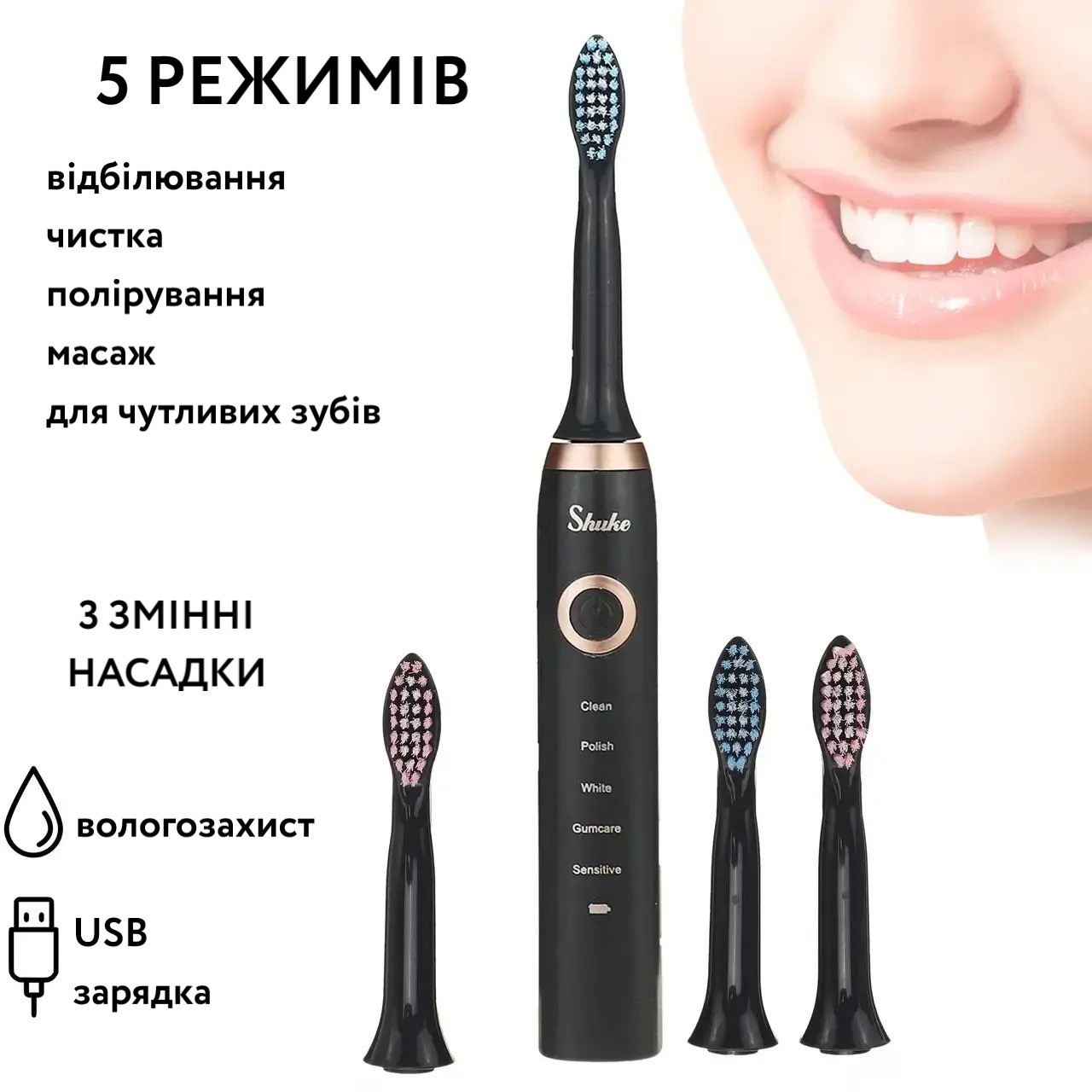 Електрична зубна щітка з 4 насадками, 5 режимів роботи