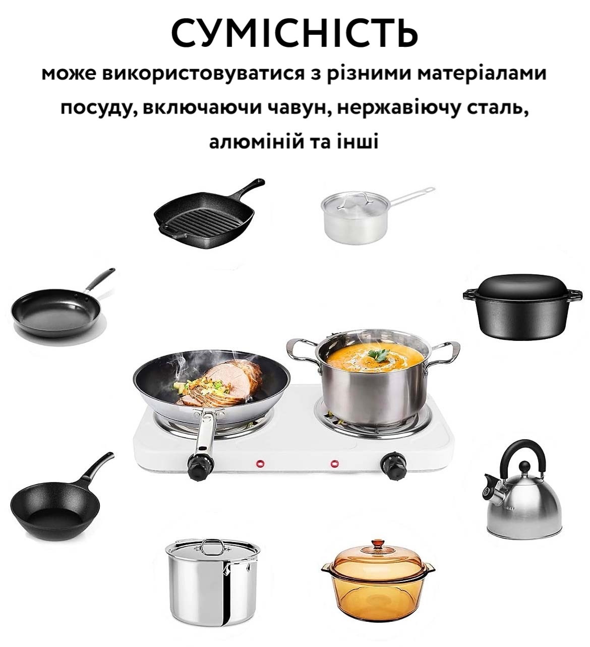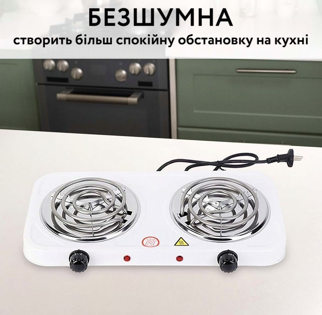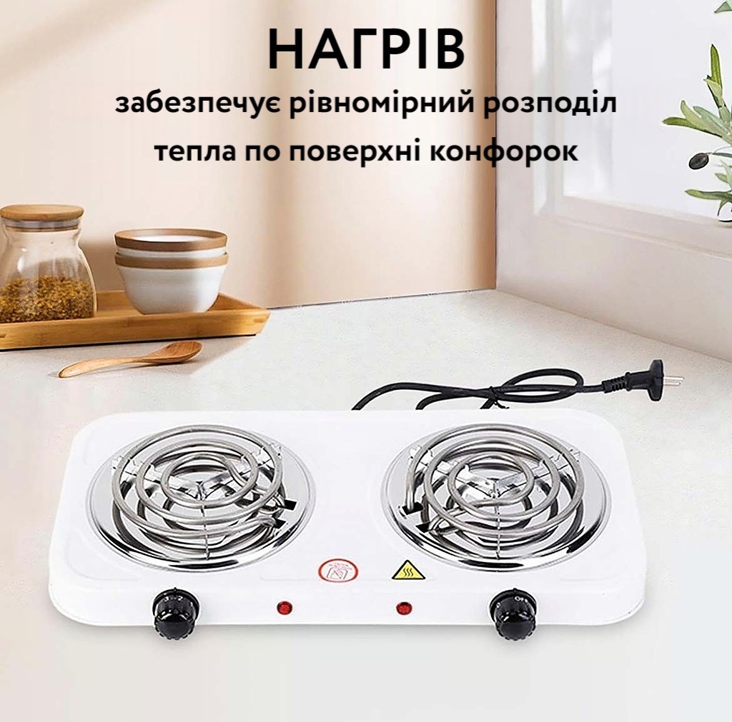 - • Потужність конфорки: 1000 Вт х 2шт;