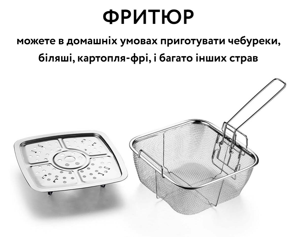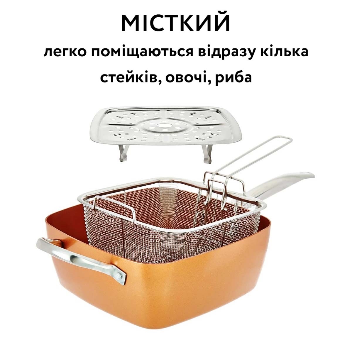 Антипригарна сковорода 24 см з кришкою, фритюром та пароваркою