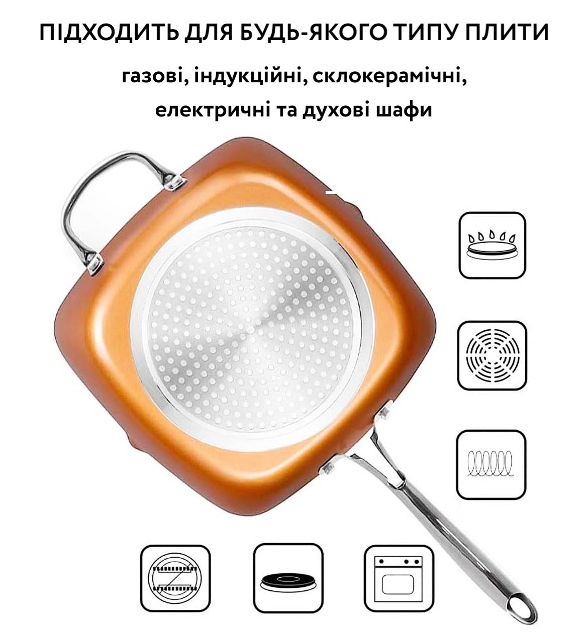 | Покриття | Антипригарне покриття з міді та кераміки |