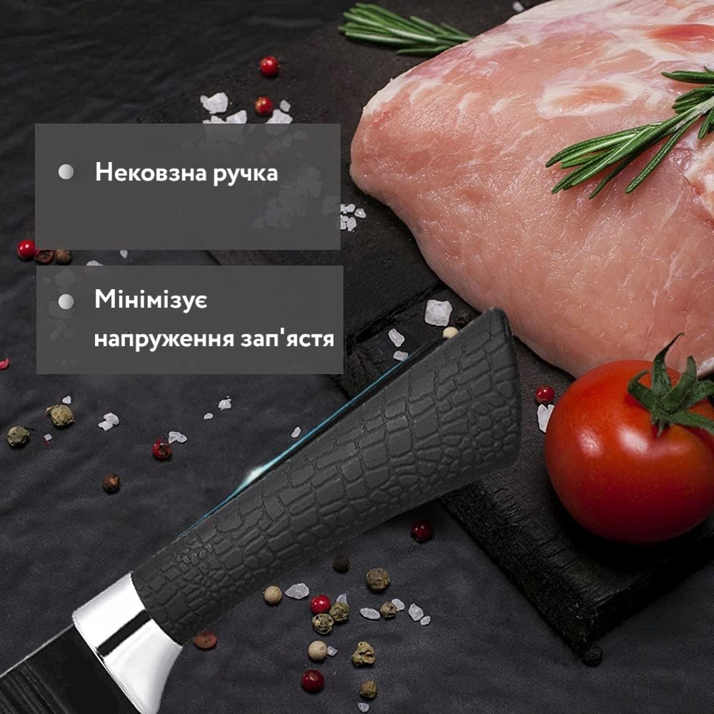 Рукоятки ножів мають продуману ергономічну форму, зручно лежать у руці та не вислизають завдяки ребристим частинам. Ці вироби стануть справжньою окрасою Вашої кухні.