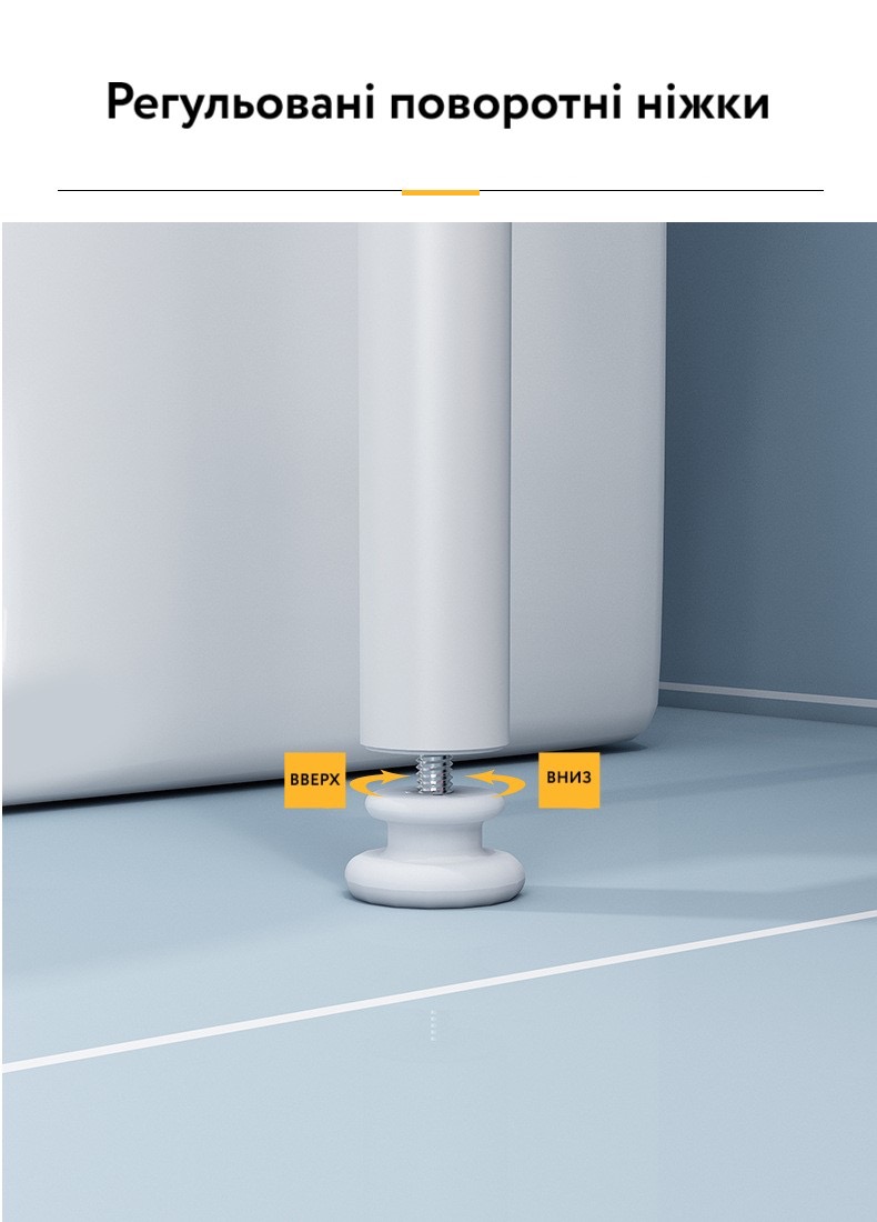 Витончена конструкція зовсім не захаращує простір, на відміну від настінної шафи. При цьому стійка досить містка. Ви зможете зручно розмістити засоби для чищення, господарські аксесуари, косметику і лазневе приладдя.