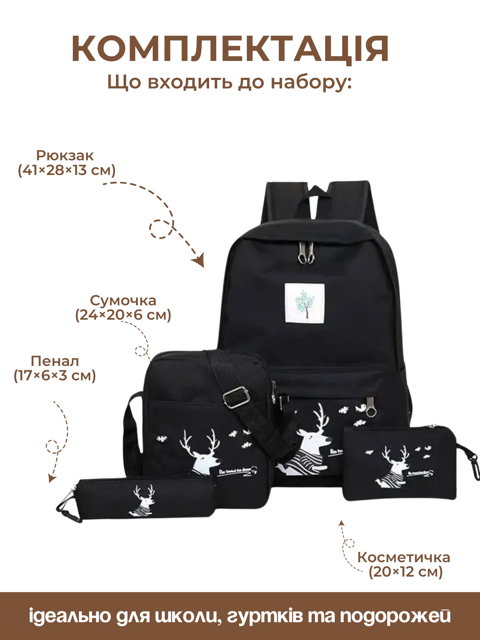 Модний набір 4 в 1 для школярів, місткий рюкзак+сумка+косметичка+пенал. Рюкзак ідеально підходить для школи та повсякденного використання.