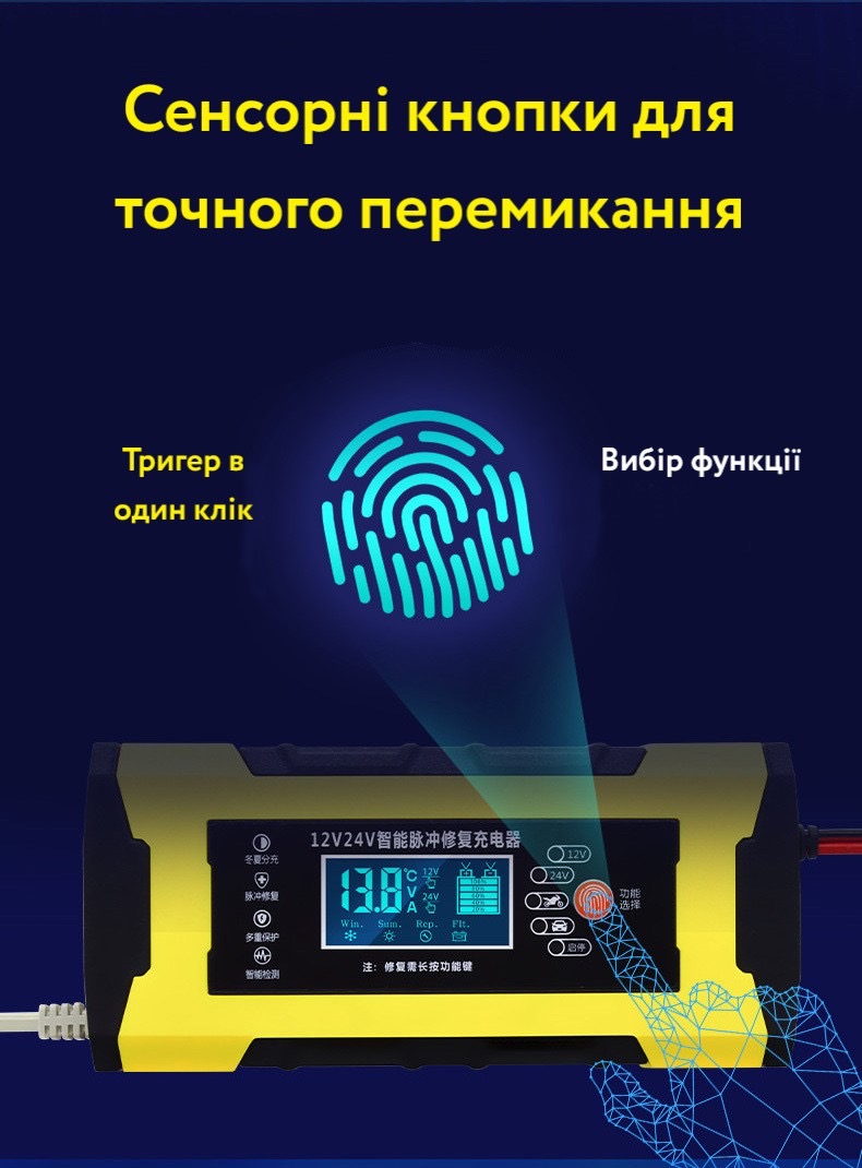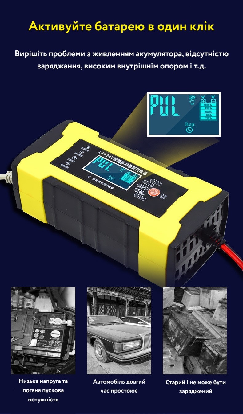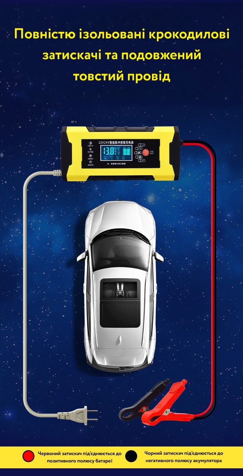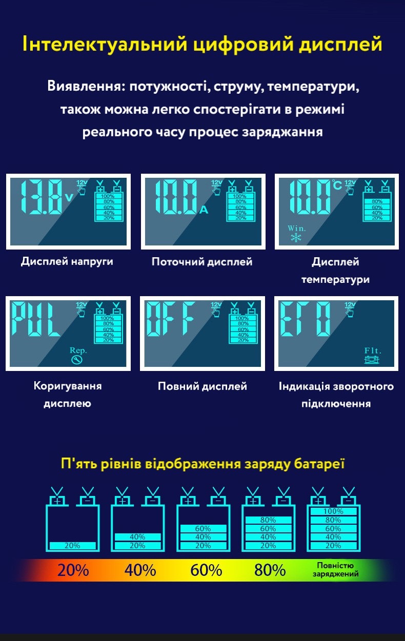 | Сумісність | Свинцево-кислотні та AGM акумулятори ємністю 10-100 Ач |