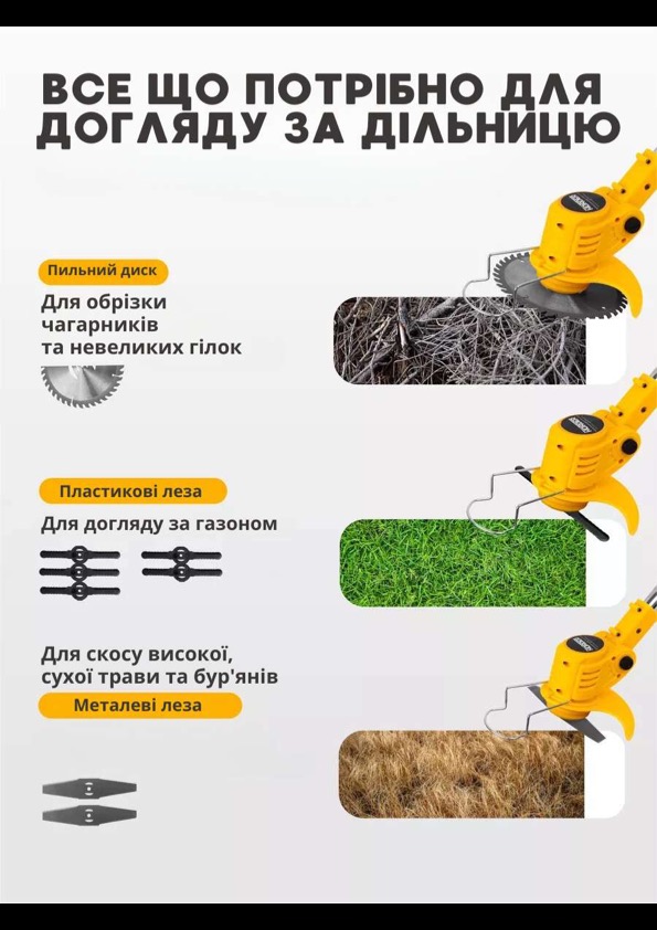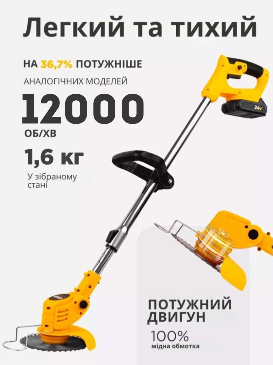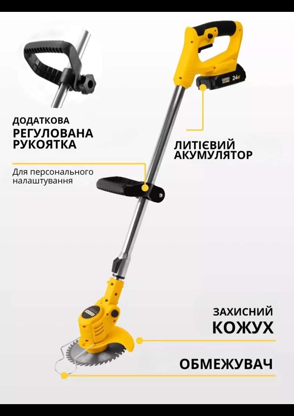 Набір акумуляторна коса для трави з 2 АКБ 24v. Газонокосарка-триммер з колесами та насадками