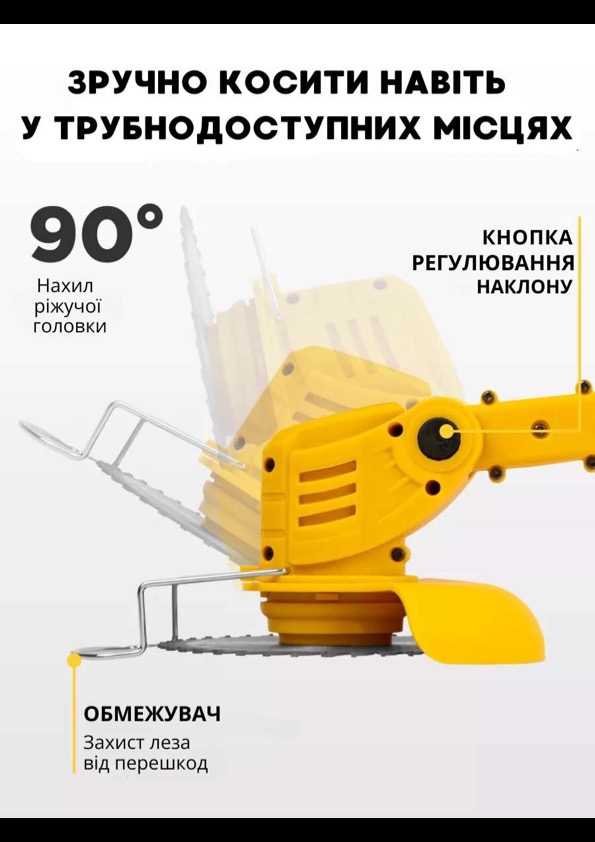 Акумуляторний бездротовий електротриммер суттєво спростить роботи на присадибній ділянці в дачний сезон. Це практичний міні бездротовий аксесуар для догляду за кущами та газоном. Електроінструмент для дачі, електрокусторіз оснащений захисним запобіжником, насадками, має 2 зручні ручки та акумулятори на 1,5Ач з оборотами 19500 за хвилину. Легкий і компактний ручний триммер електрокосарка може використовуватися для укосу високої трави, стрижки газону, бур'янів та чагарників.