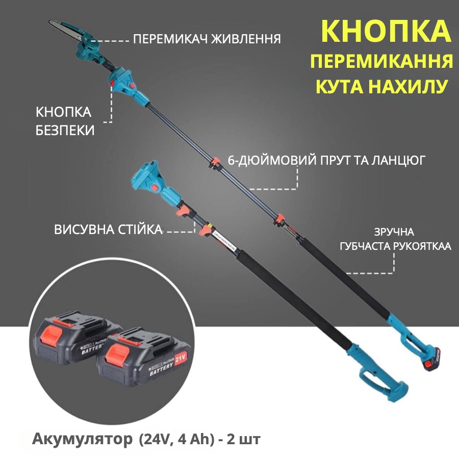 Набір акумуляторна пилка 2АКБ 24V висоторіз подовжувач 2м