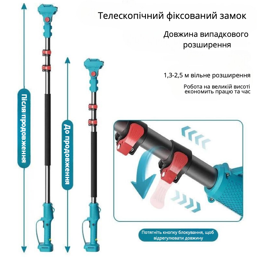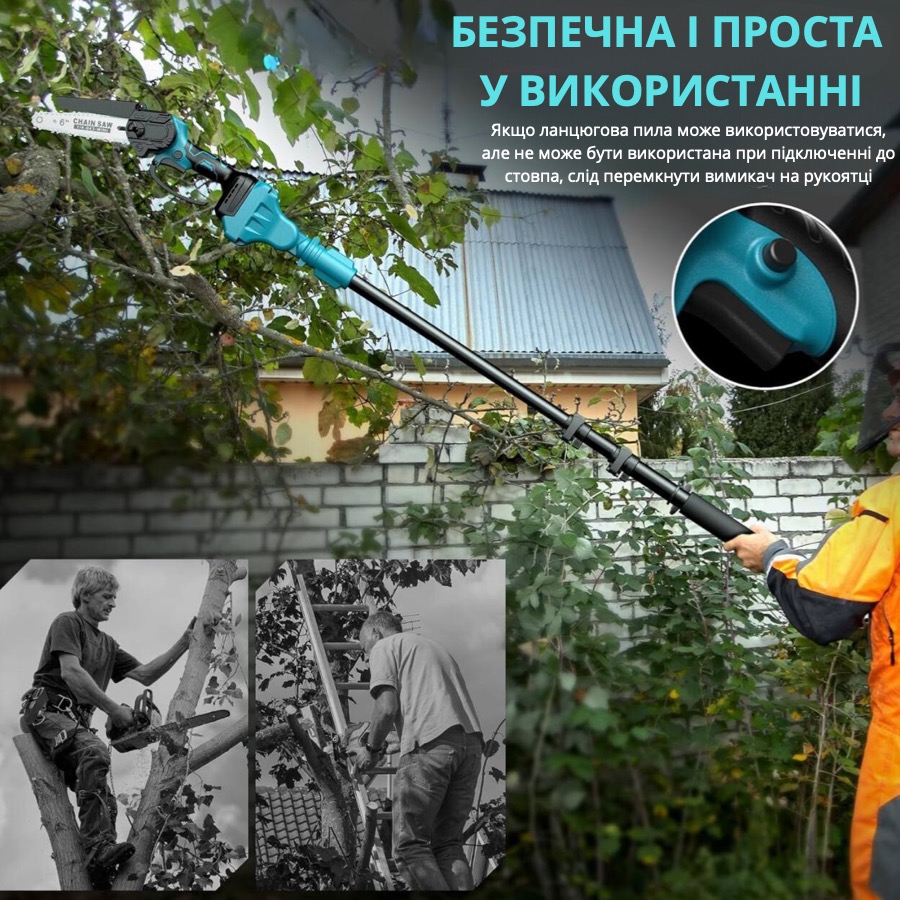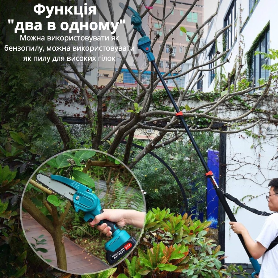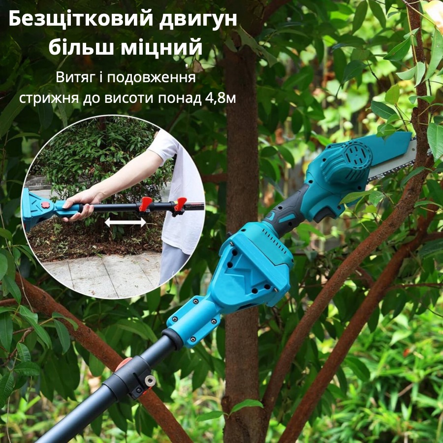 Універсальність – подовжувач підходить для використання з різними моделями ланцюгових пилок і акумулфторних секаторів.