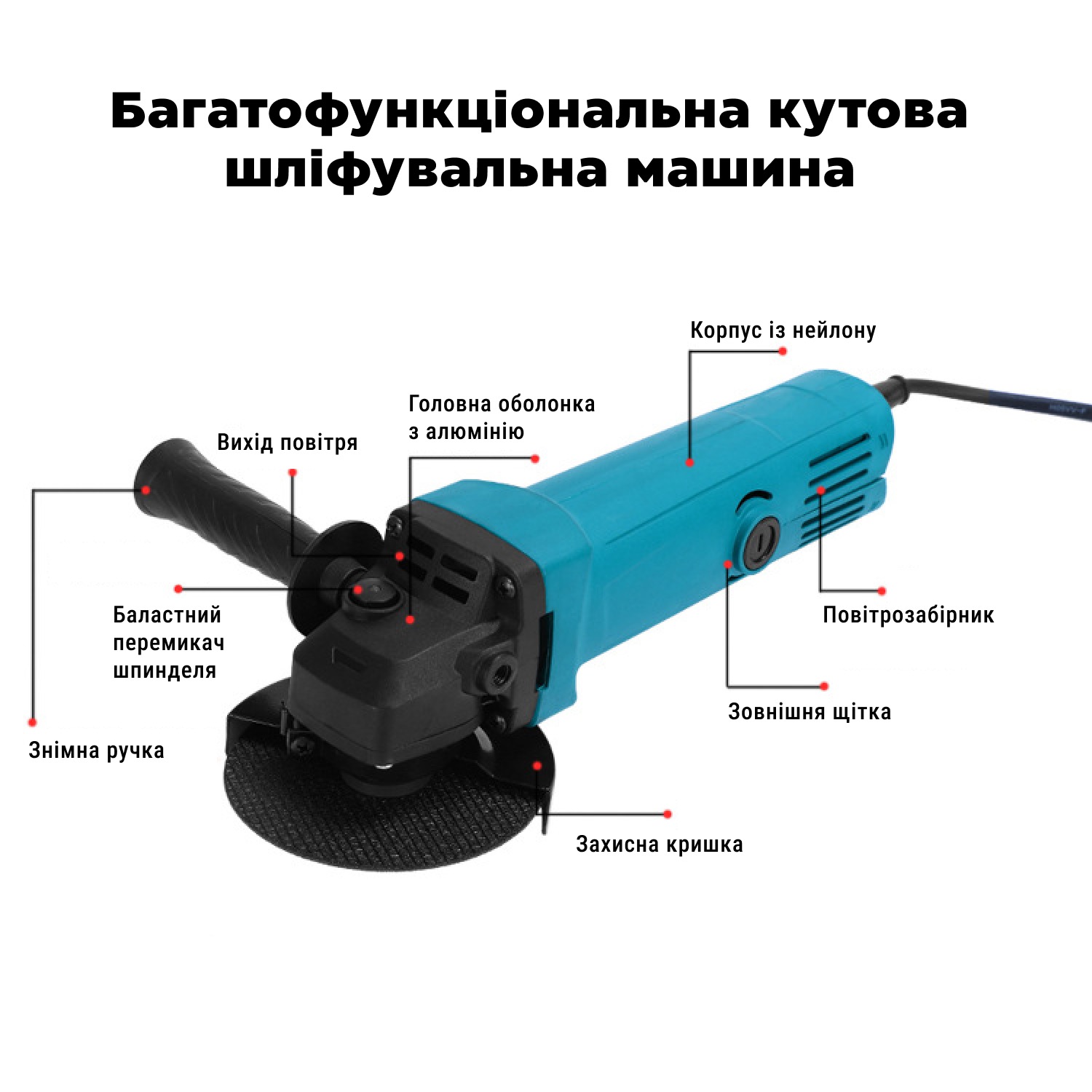 Болгарка цей електроінструмент працює від 840-ватного двигуна, який забезпечує довгий термін служби завдяки надійному захисту від пилу і високих температур, і дає змогу працювати зі швидкістю до 11 000 об/хв на диску діаметром 125 мм. Додаткові опції для Makita включають функцію блокування кнопки ввімкнення і блокування шпинделя, призначену для швидкої заміни ріжучих елементів.