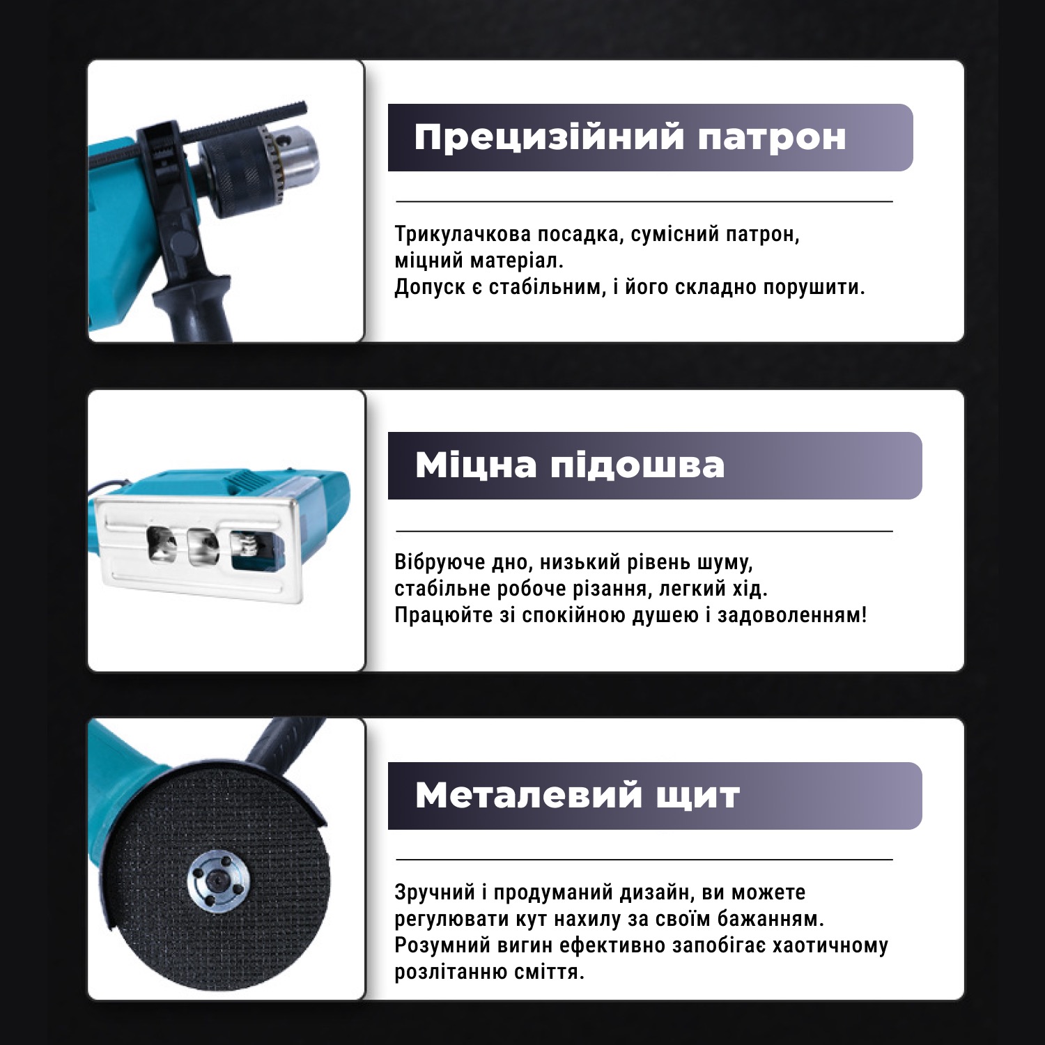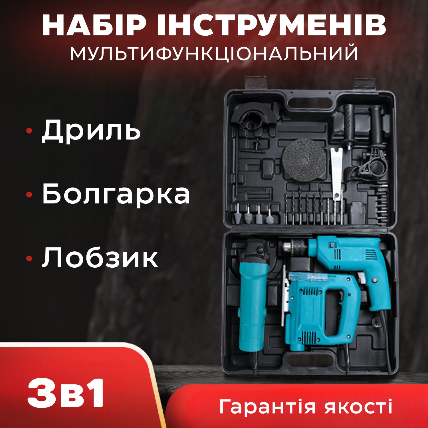 | Найменування товару | Набір електроінструментів 3 в 1 з дрилем, лобзиком і болгаркою |