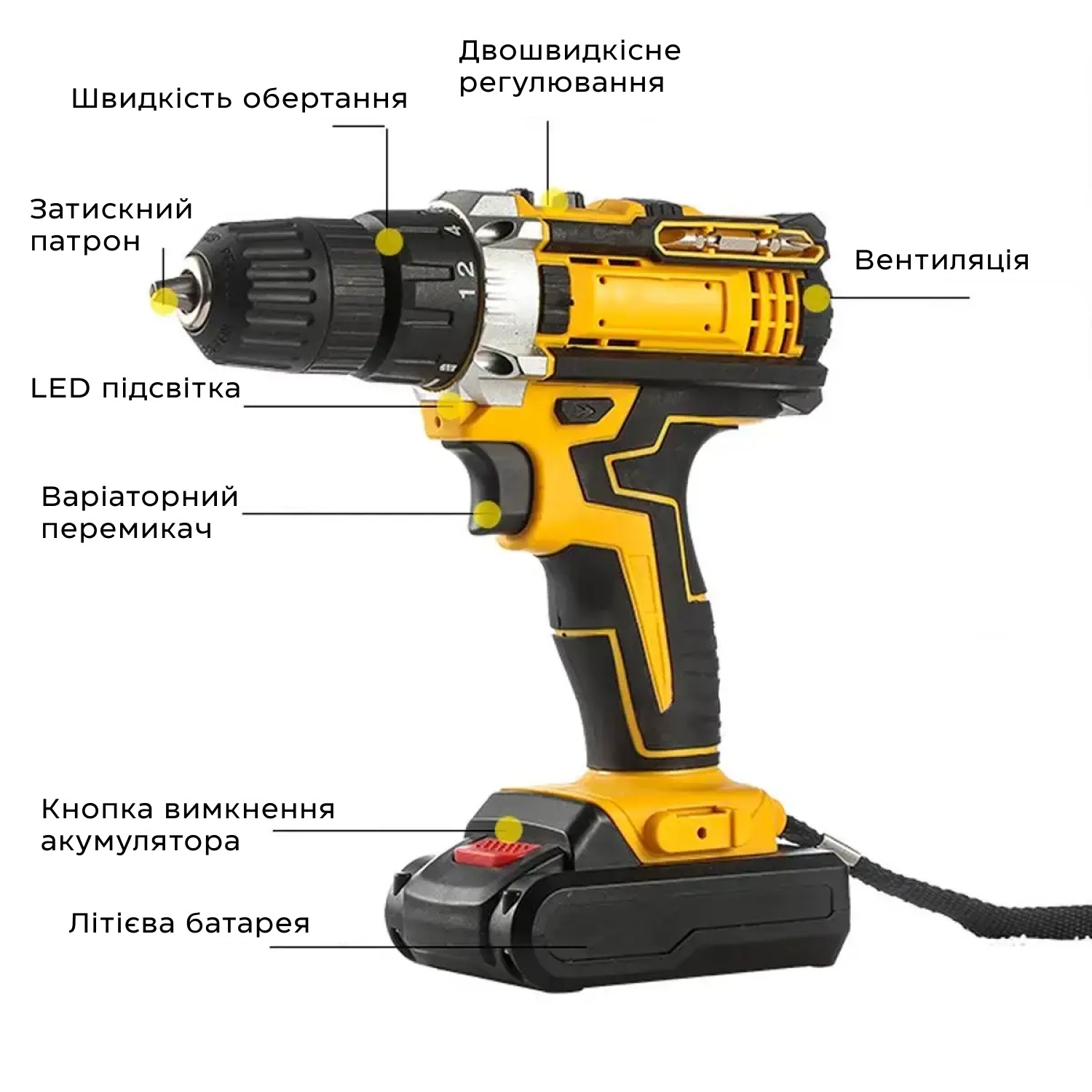 Акумуляторний шуруповерт. Набір слюсарного інструменту в валізі 24v