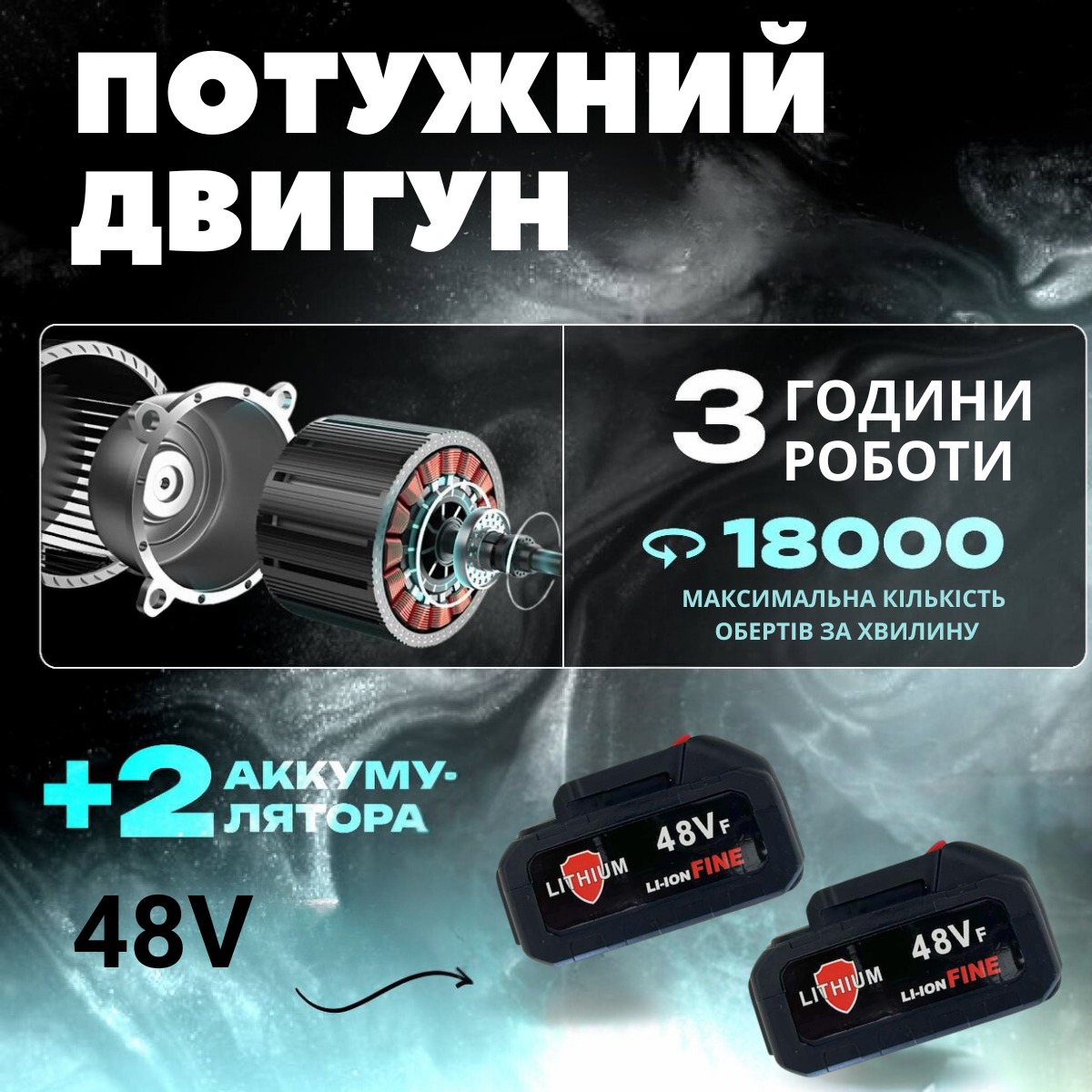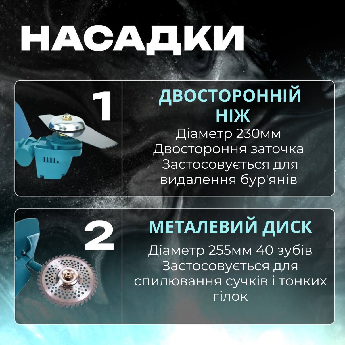 Набір безщіткова акумуляторна коса для трави з 2 АКБ 48v. Газонокосарка насадки у комплекті.