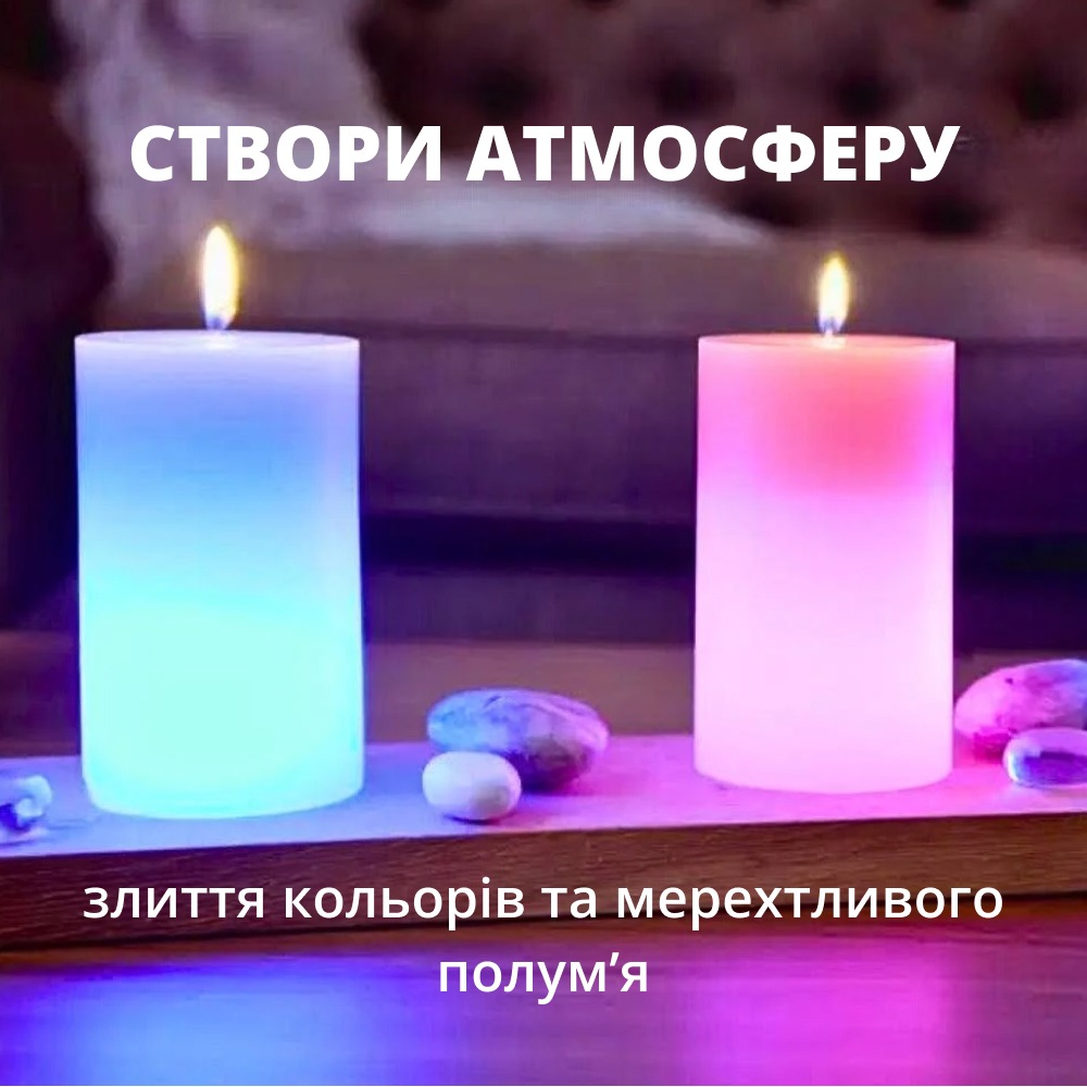 Свічки Candled Magic горять справжнім полум’ям, створюючи ефект справжньої свічки, яке супроводжується неймовірним різнокольоровим сяйвом, що полонить усю кімнату. Вона стане родзинкою у святковому інтер’єрі, зробить приміщення затишним.