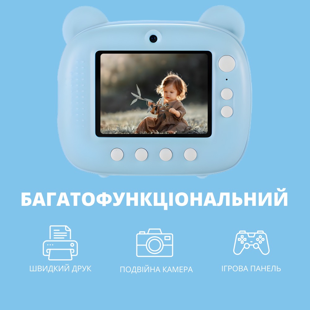 Дитячий фотоапарат - це захопливий і зручний пристрій цікавого дизайну, що дає змогу дітям не тільки фотографувати, а й миттєво друкувати свої знімки. Цей прилад поєднує в собі простоту використання, безпеку і безліч творчих можливостей, що робить його ідеальним подарунком для маленьких фотографів. Вбудований акумулятор заряджається через USB, забезпечуючи тривалий час роботи та зручність використання. Інтуїтивно зрозумілий інтерфейс і зручні кнопки роблять фотоапарат легким у використанні навіть для найменших користувачів. Дітям не знадобиться тривалого навчання, щоб почати фотографувати.
