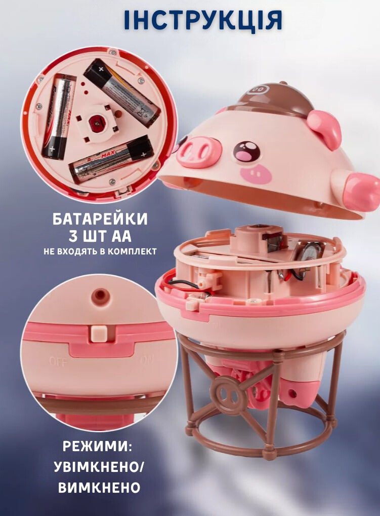 Інтерактивна іграшка оснащена потужним гіроскопом, який видає характерний шум під час роботи — але це лише додає веселощів і не заважає дітям насолоджуватися процесом. Для живлення іграшки потрібні три батарейки типу AA. Рекомендується використовувати якісні батарейки відомих брендів для стабільної і тривалої роботи.