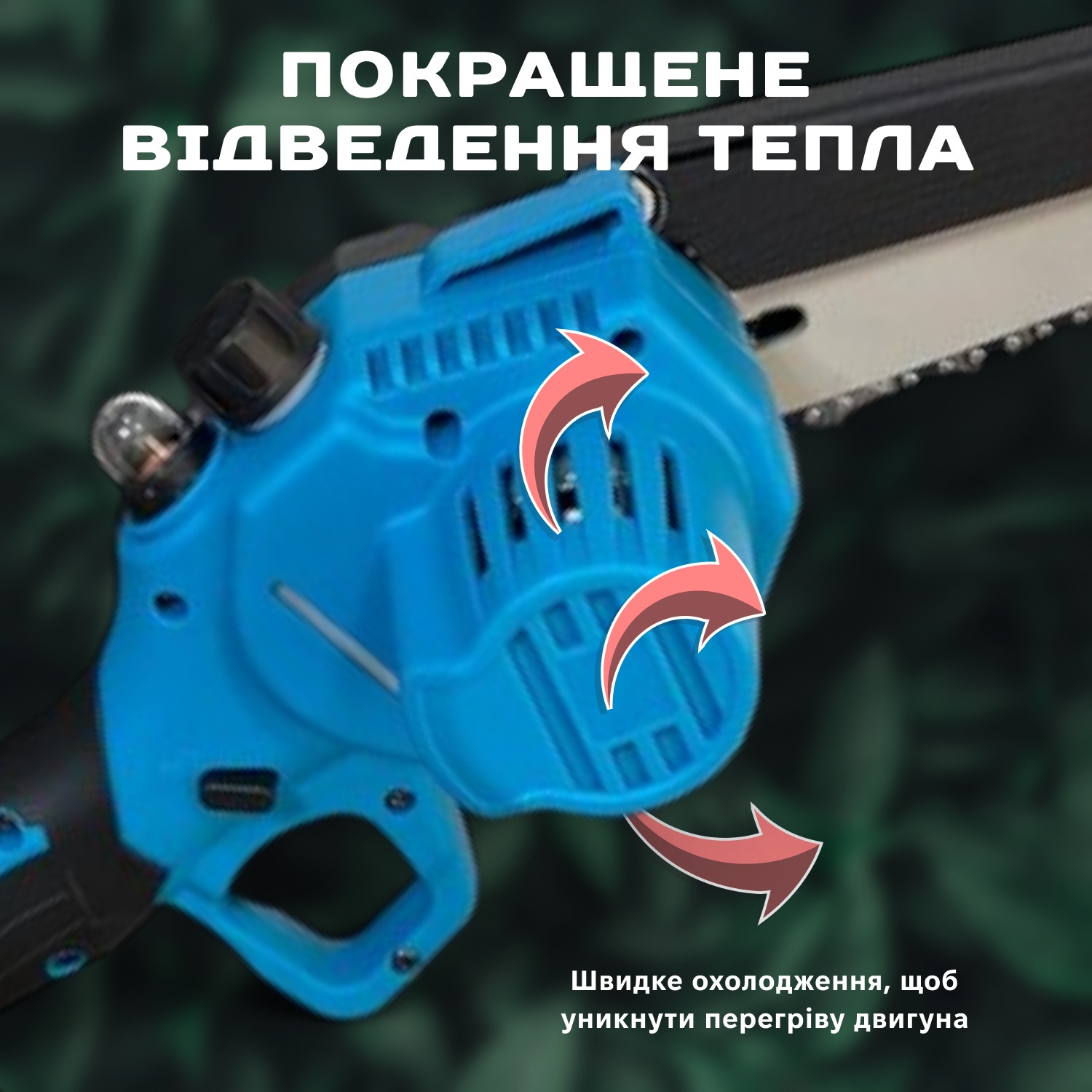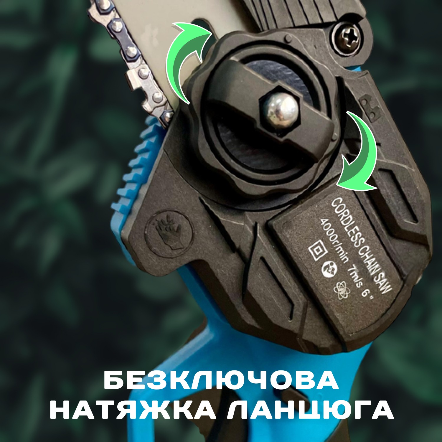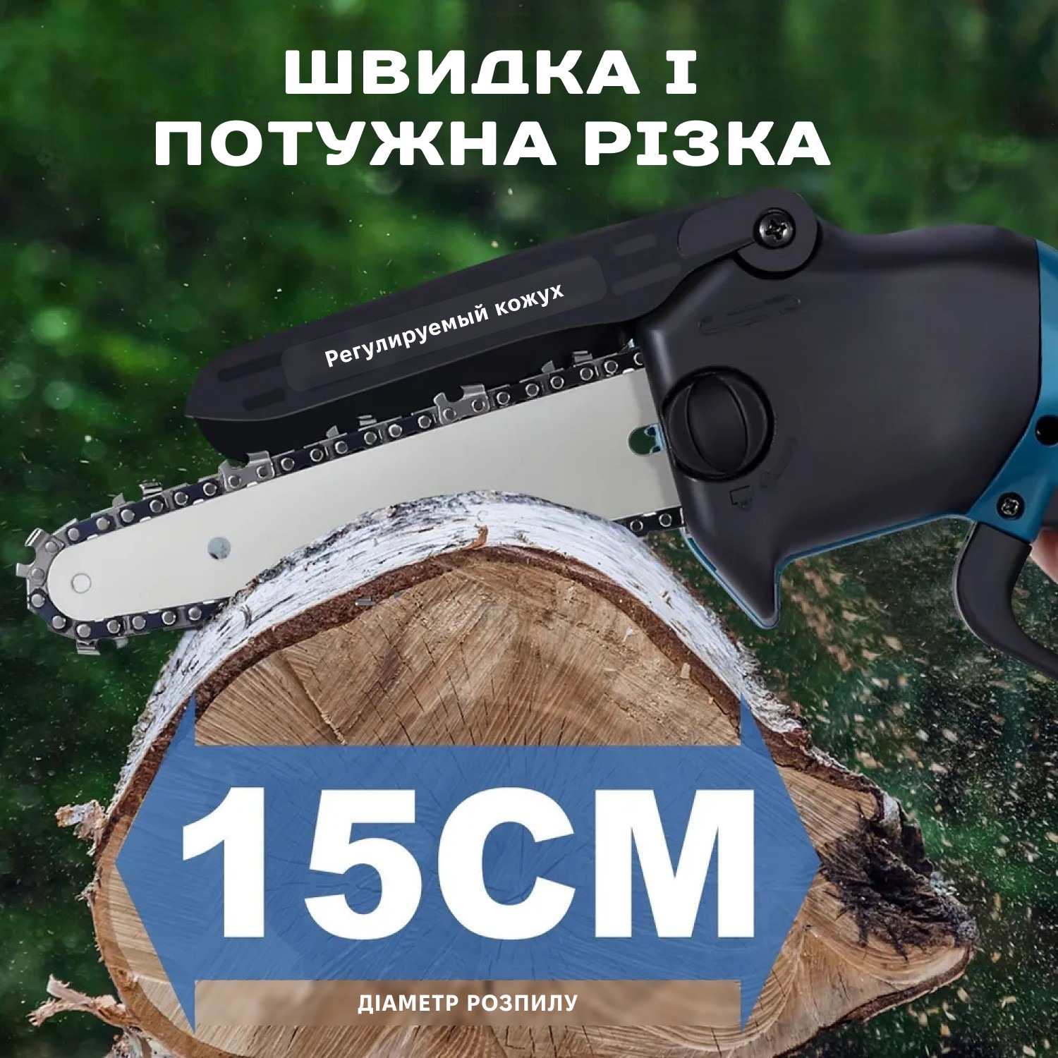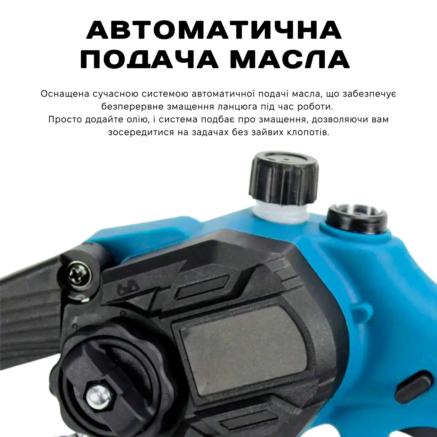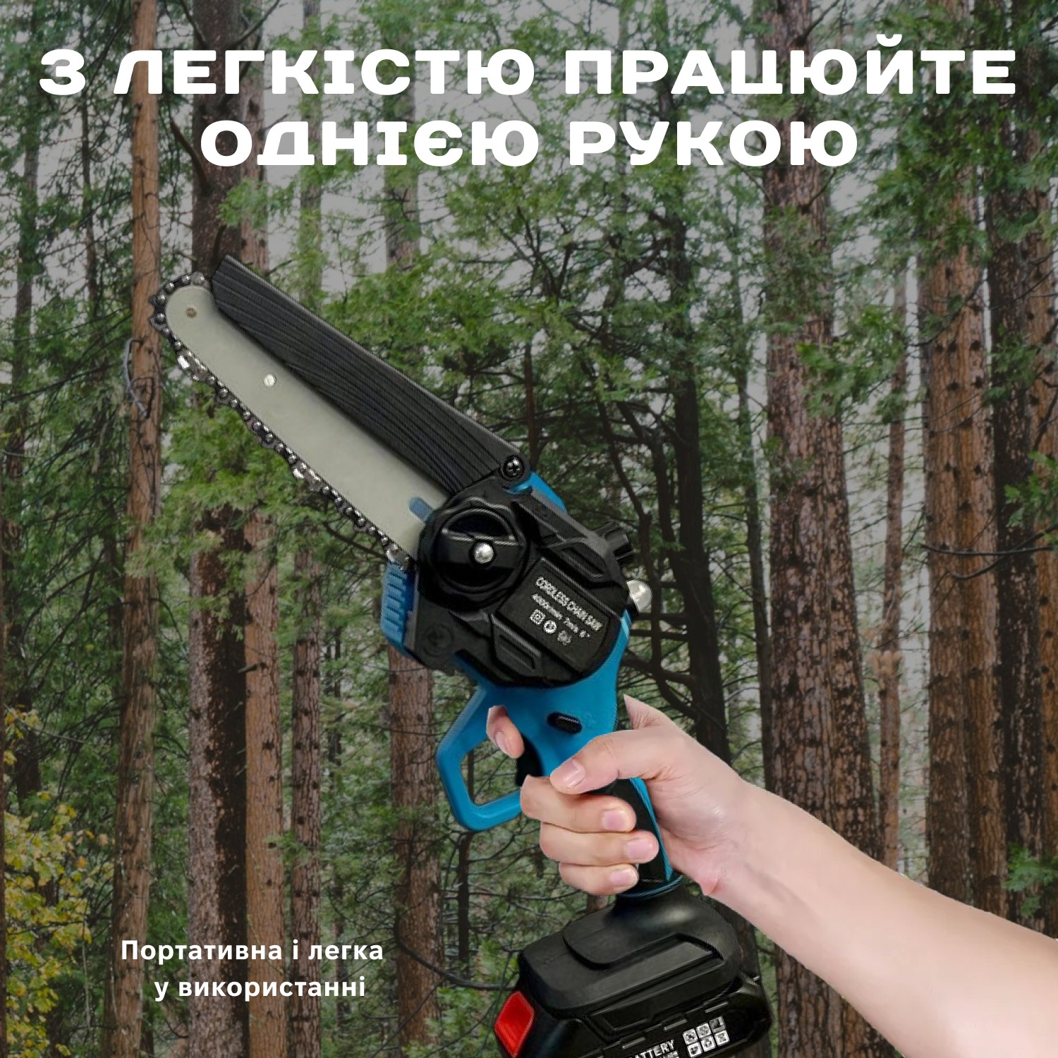 Акумуляторна міні-пила — це високоякісний інструмент, призначений для полегшення роботи з обрізання та видалення гілок. Оснащена 24-вольтовим акумулятором місткістю 2 Агод, вона забезпечує достатню потужність і тривалий час роботи. Високоємний акумулятор дозволяє ефективно виконувати великий обсяг завдань без частого підзаряджання, що особливо зручно при роботі на великих територіях або далеко від джерел живлення. Компактний і легкий корпус пилки робить її простою та зручною у використанні. Ергономічний дизайн забезпечує надійне зчеплення та відмінну маневровність, що дозволяє легко та точно обрізати гілки. Пила оснащена міцним ланцюгом, який забезпечує високу продуктивність і довговічність при роботі з різними типами дерев та гілок, дозволяючи ефективно справлятися із завданнями обрізання.
