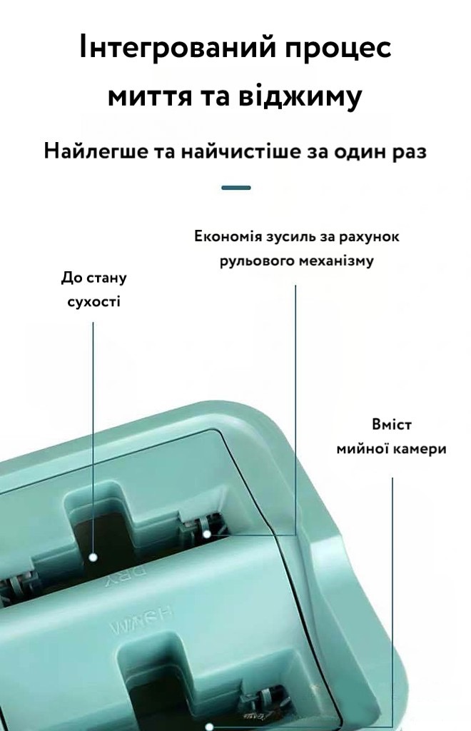 | Переваги | Автоматичний віджим, дві насадки для миття, зручне відро, насадки з мікрофібри |