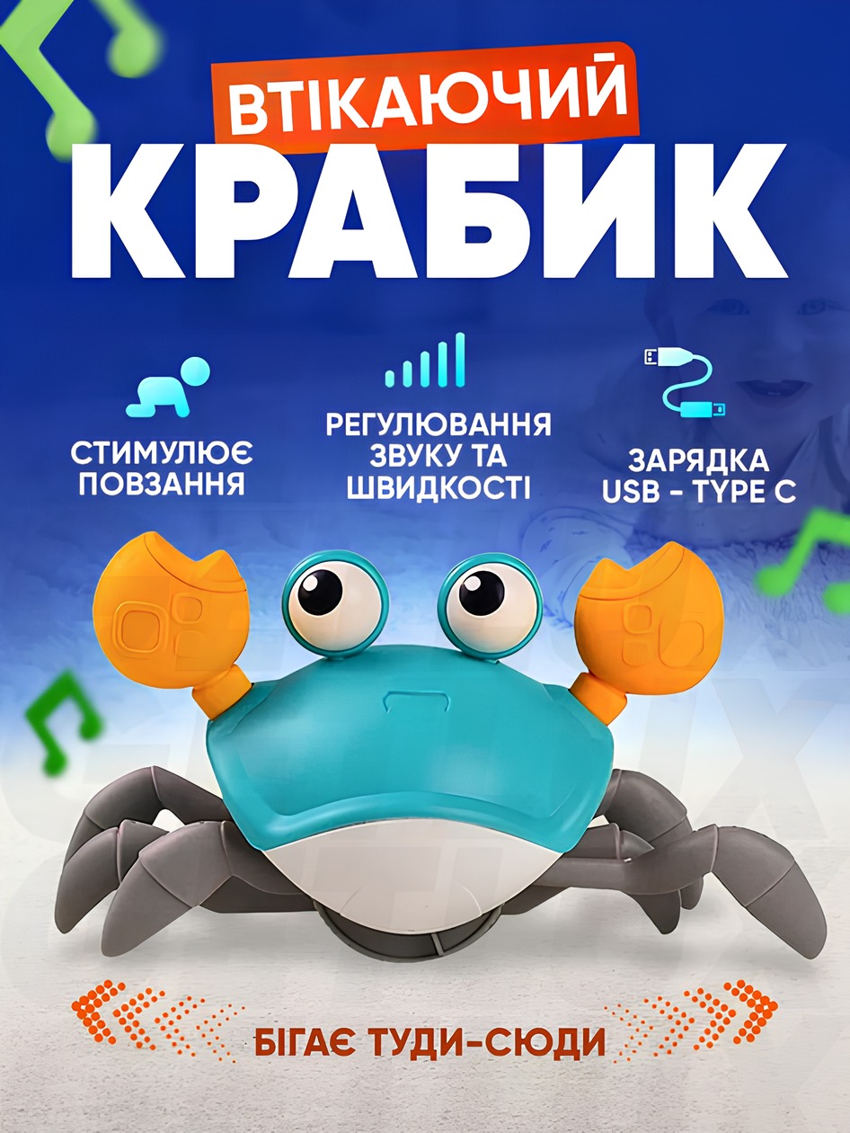 Інтерактивна іграшка "Краб з музичними ефектами" - це кумедний і розвиваючий друг, який радуватиме і викликатиме посмішку у вашого малюка.