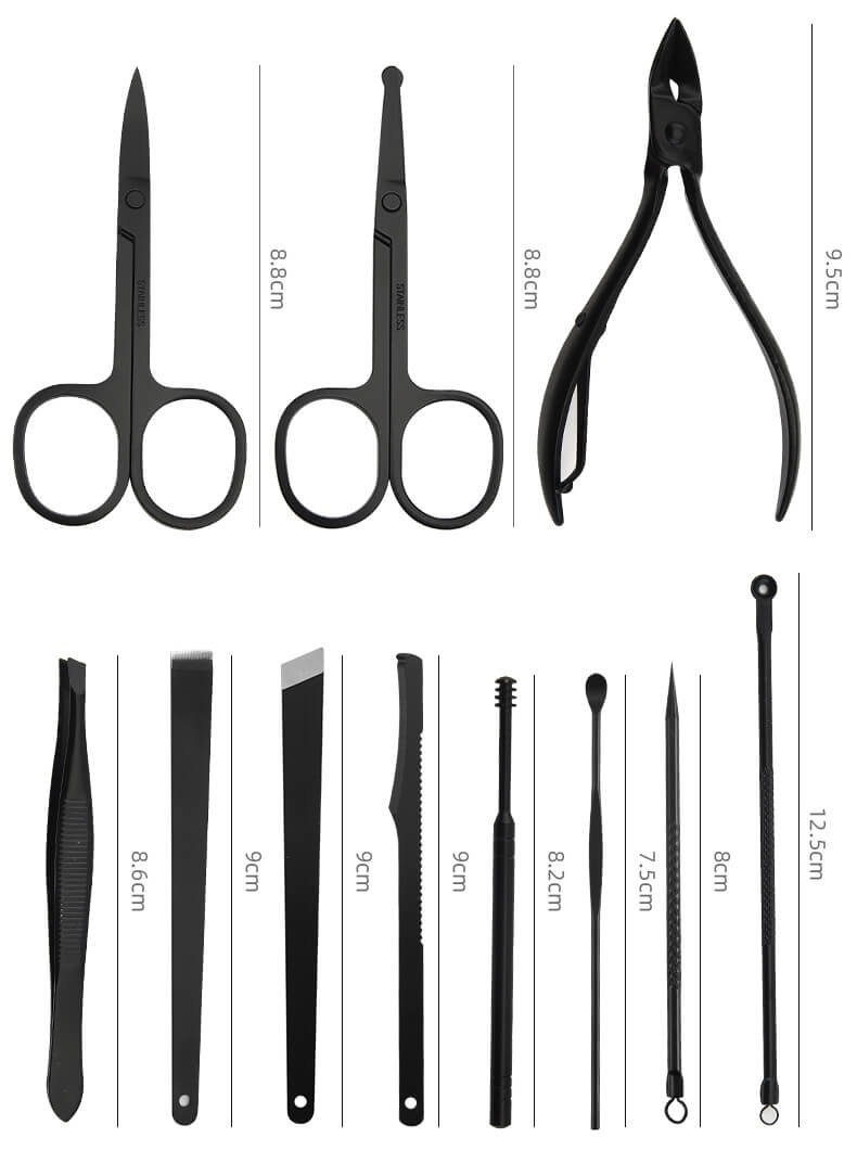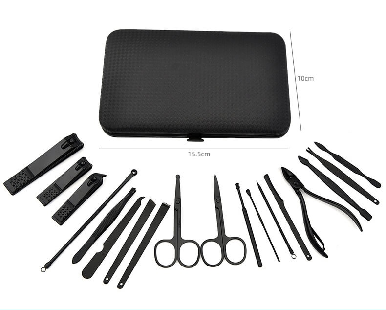 Набір для манікюру та педикюру на 18 предметів Манікюрний педикюрний набір складається з 18 предметів, виготовлених із міцної медичної сталі.